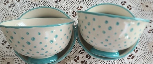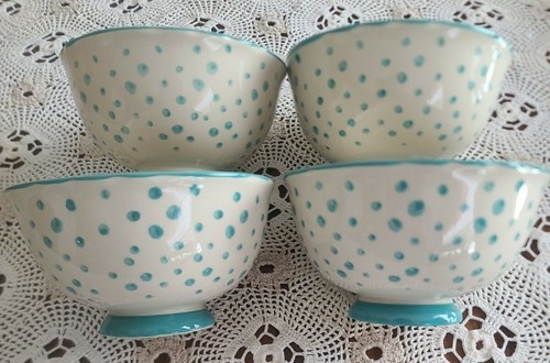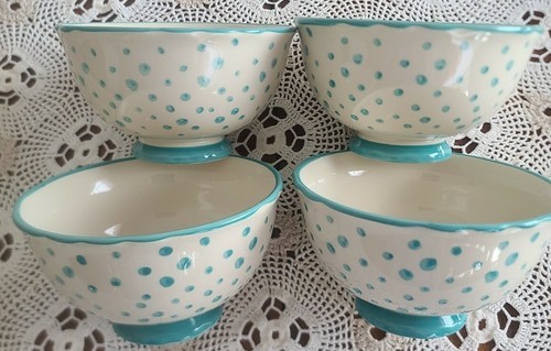 Set of Four (4) Pioneer Woman ~ Teal ~ Retro Polka Dot ~ 6" ~ Stoneware Bowls