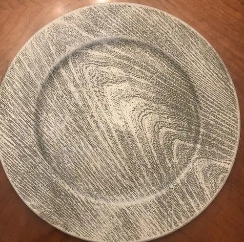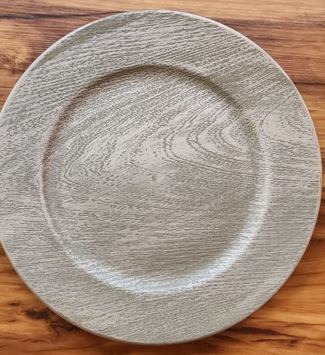 Greenbrier ~ Set of Four (4) ~ 13" Dia. ~ Gray ~ Faux Woodgrain ~ Charger Plates