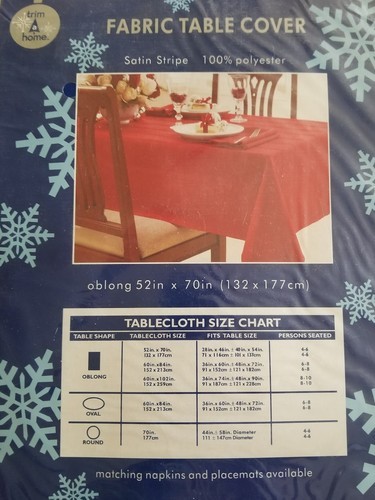 TRIM A HOME SATIN STRIPE FABRIC TABLECLOTH OBLONG 60X102 HOLIDAY RED, NEW