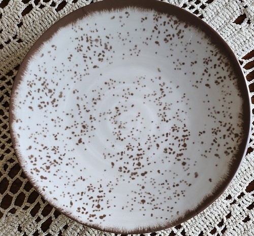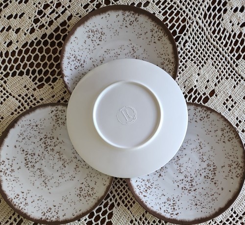 Elama Pryce ~ Four (4) Melamine ~ Off White ~ Speckle Design ~ 8" Salad Plates