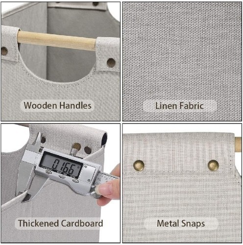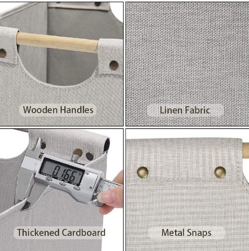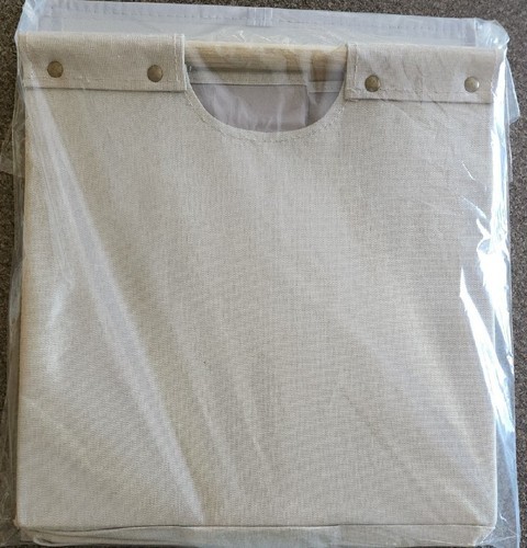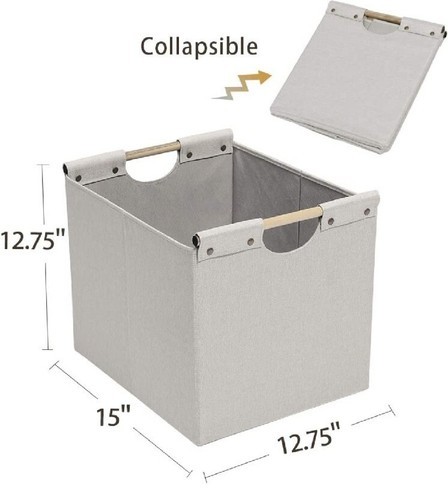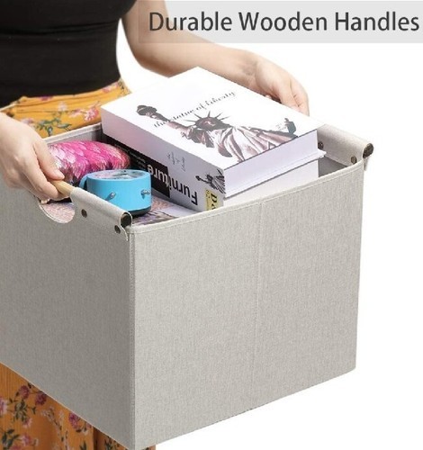 Collapsible Storage Bin ~ BEIGE ~ Linen Fabric w/Wooden Handles ~ 12.75" x 15"
