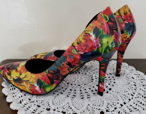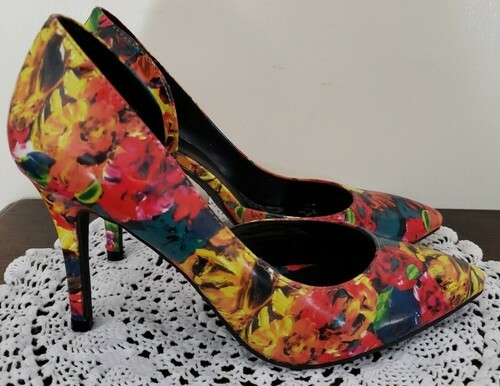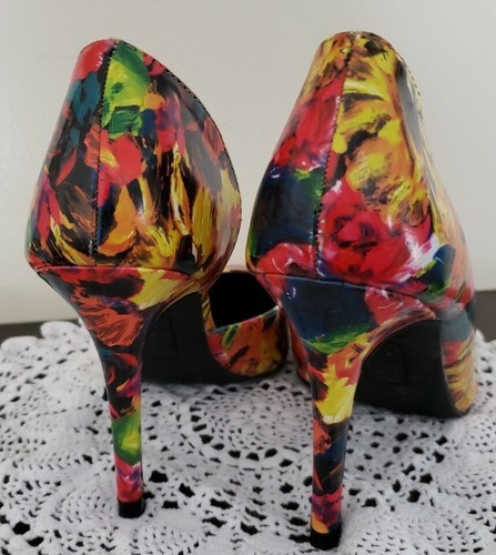 Brash Brand ~ Women's Size 7 ~ 3.75" Hi Heel Shoes~ Multicolored Floral Design