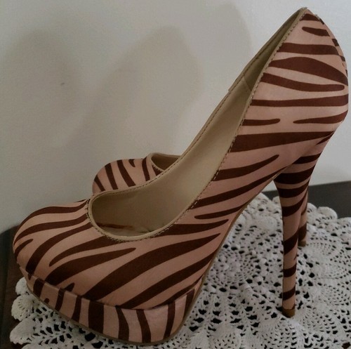 Liliana ~ Women's Size 8 ~ Animal Fabric Print ~ 5.5" Hi-Heeled Platform Shoes