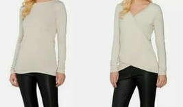 H BY Halston Reversible Wrap Style Long Sleeve Sweater ~ Stone~ Women's Large