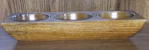Vintage 14" x 5" x 2.25" ~ Three (3) Dipping Bowls in a Wooden Holder