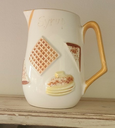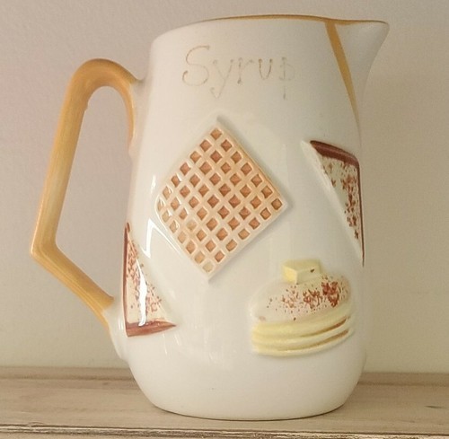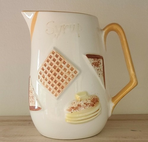 This is a Mid Century pitcher labeled "Syrup"