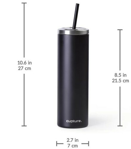 Measures approximately 2.7" wide x 8.5" tall (10.6" with straw inserted)