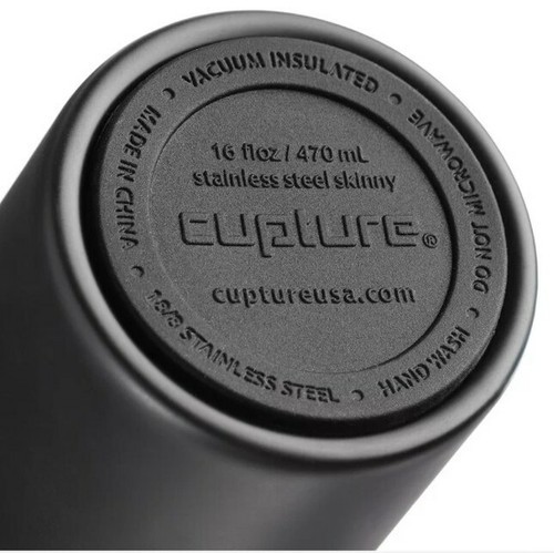 Cupture Skinny Cup 16 oz. Double Wall Insulated Stainless Steel Tumbler ~ Black