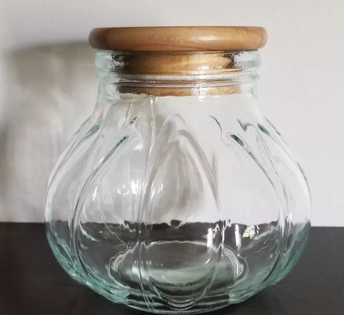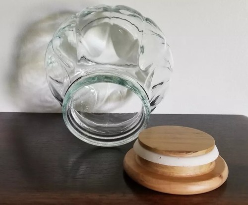 C. Steinweg ~ Wooden Sealed Lid ~ Clear Glass Jar ~ 6.5" Tall x 6.5" Wide