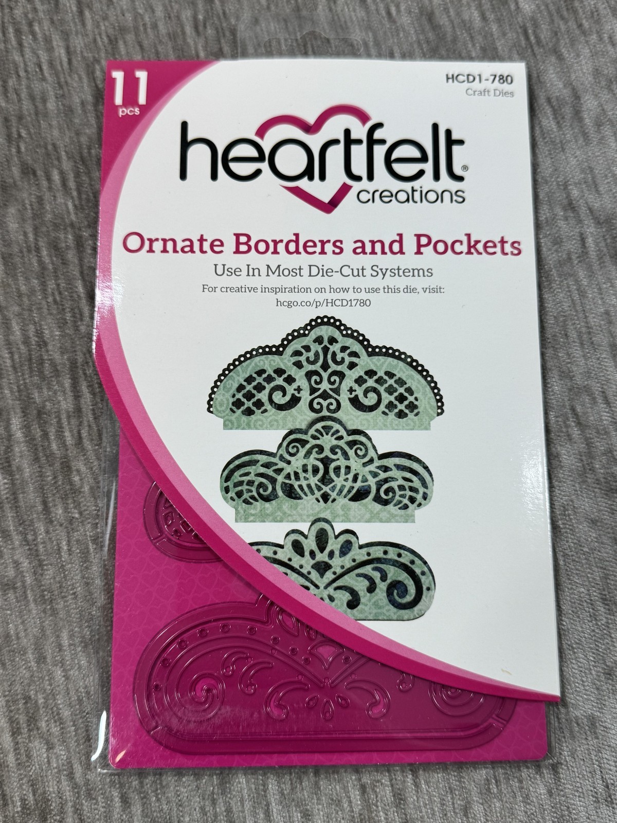 Heartfelt Creations Ornate Borders and Pockets metal cutting die set for paper crafting projects; compatible with most die-cut systems.