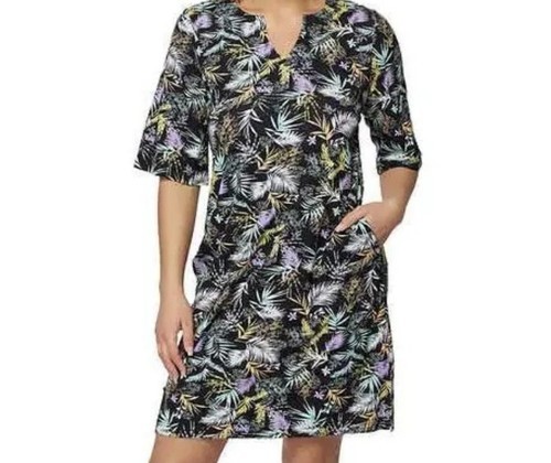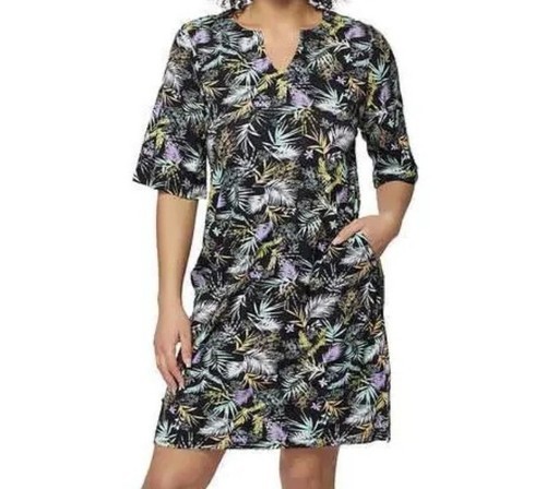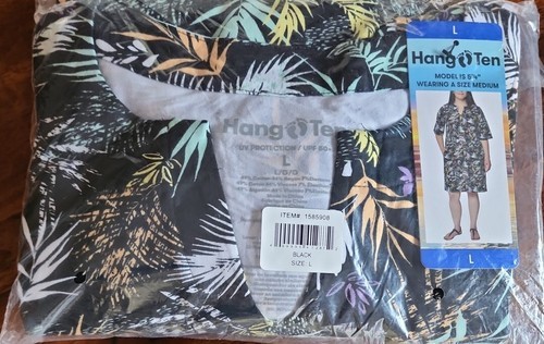 HANG TEN ~ Women's Large ~ Black Floral ~ Sun Dress ~ UPF 50+ Moisture Wicking