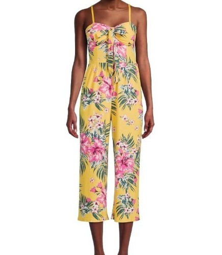 No Boundaries ~ XL ~ Lunar Yellow Floral ~ Tie Front ~ Strapless ~ Jumpsuit