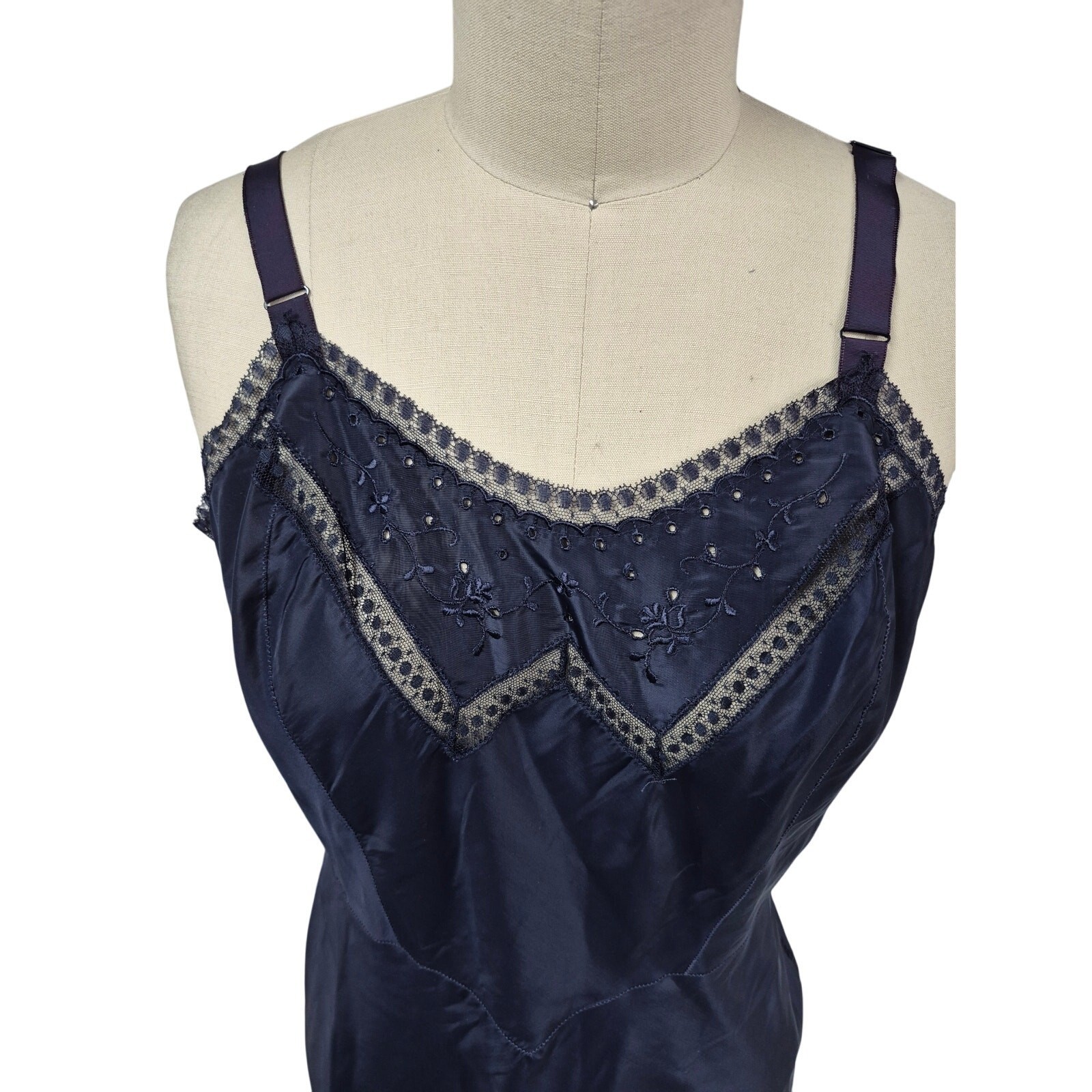 40s 50s VTG Barbizon Noisy Tafredda Navy Blue Full Slip / Slip Dress /Old 16/M