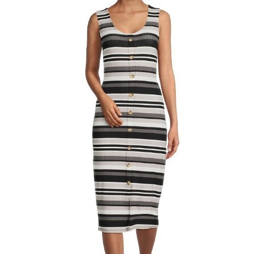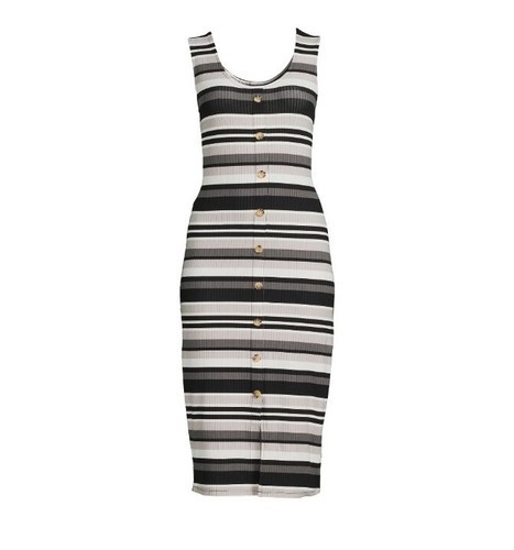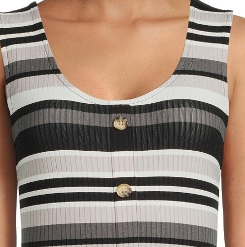 No Boundaries ~ S (3-5) ~ Button Front ~ Gray/Black Stripe ~ Sleeveless Dress