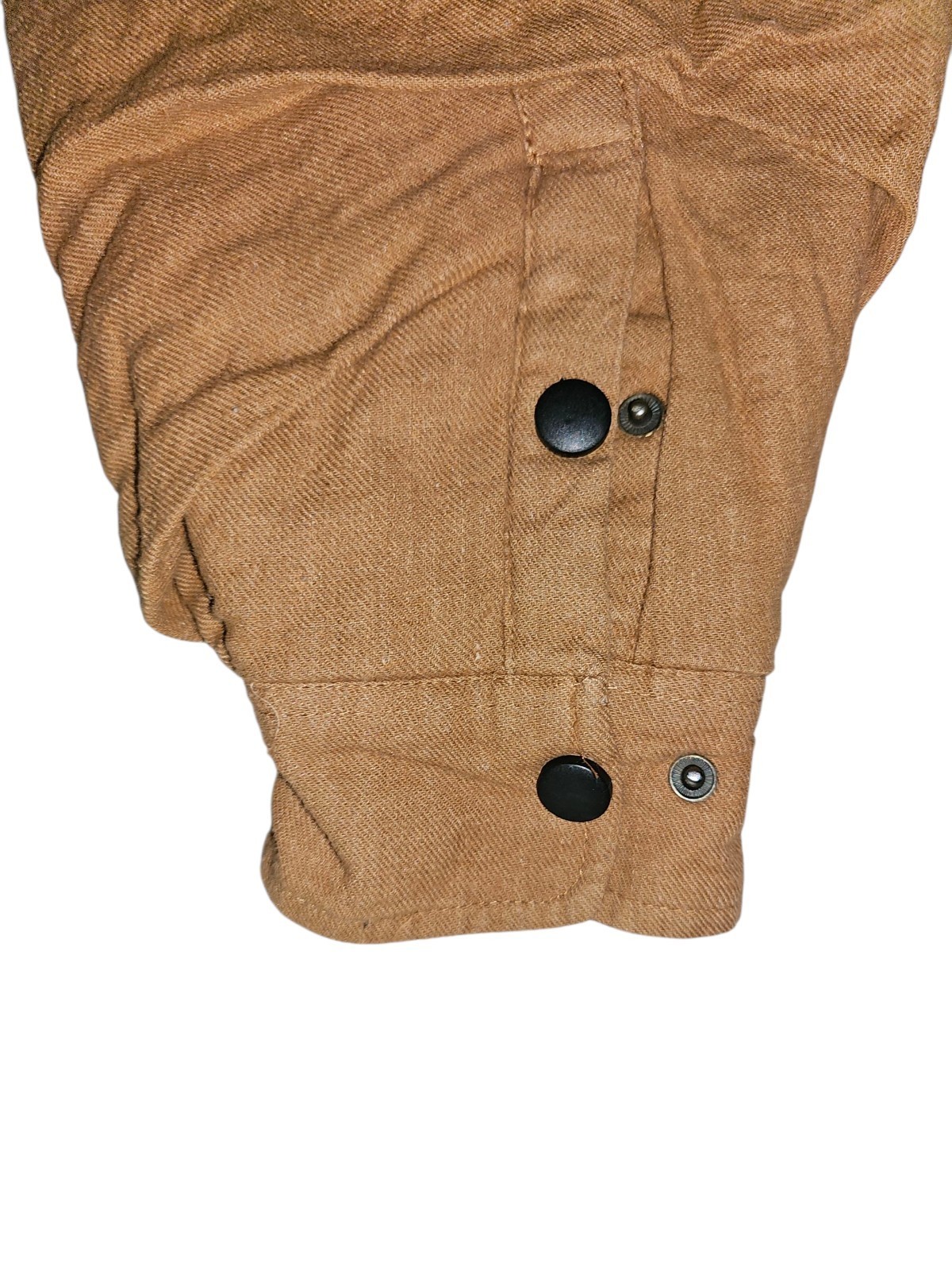 The Haband Tailgater Shacket Men's Jacket is a vintage-inspired grunge flannel hooded workwear piece perfect for casual or work occasions. Made from cotton flannel with a polyester lining, this jacket features a quilted design, full zip closure, and a hood for added warmth. The mid-length jacket in size 3X has a regular fit, making it comfortable for everyday wear. With a unique brown plaid pattern, this jacket from the 90s has a classic look with modern features suitable for winter, fall, and spring seasons.