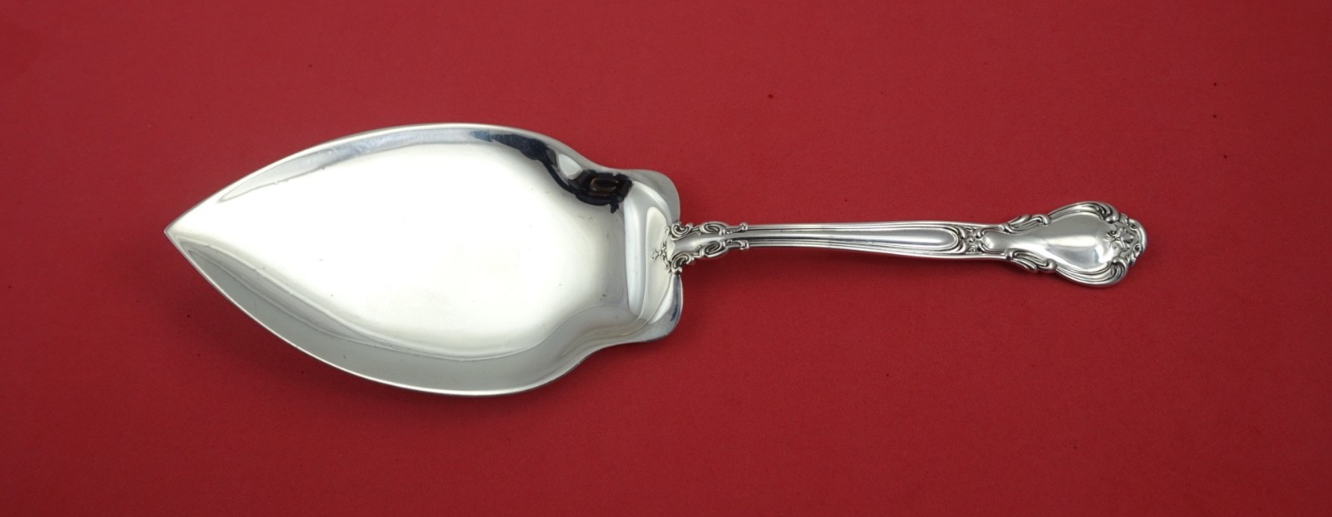 Sterling silver flat handle all sterling Pie Server with plains shoulders, 9 1/4" in the pattern Chantilly by Gorham. It is not monogrammed and is in excellent condition.