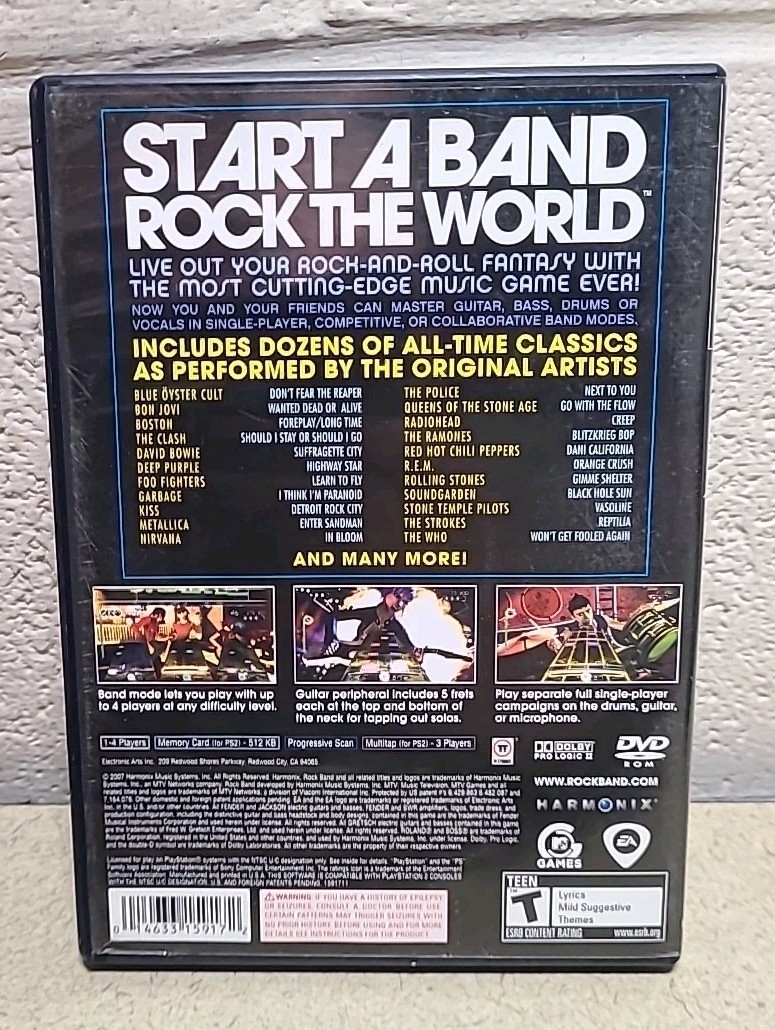 Get ready to rock and roll with Rock Band for PlayStation 2! This game is perfect for music lovers who want to showcase their talent. With a T-Teen rating, it's suitable for players of all ages. The game comes complete in box (CIB) and is in excellent condition.