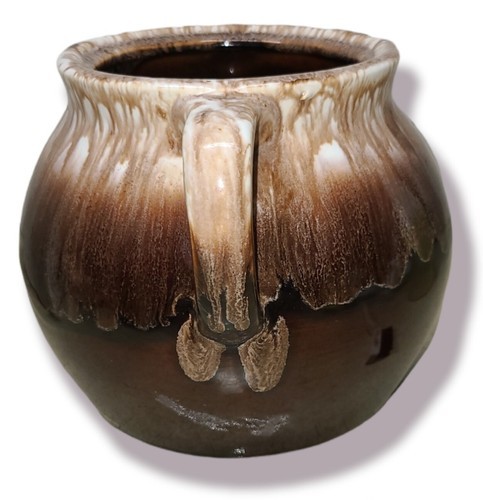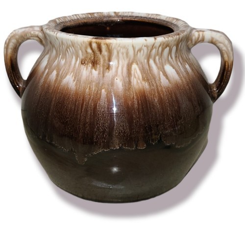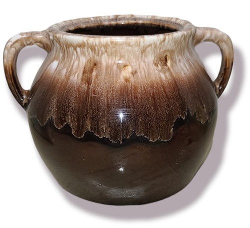 Vintage McCoy Hull ?USA Pottery Brown Drip Soup Tureen Pot with Handles 6x8".