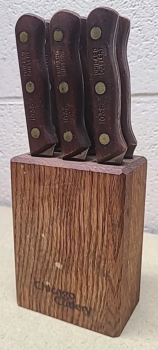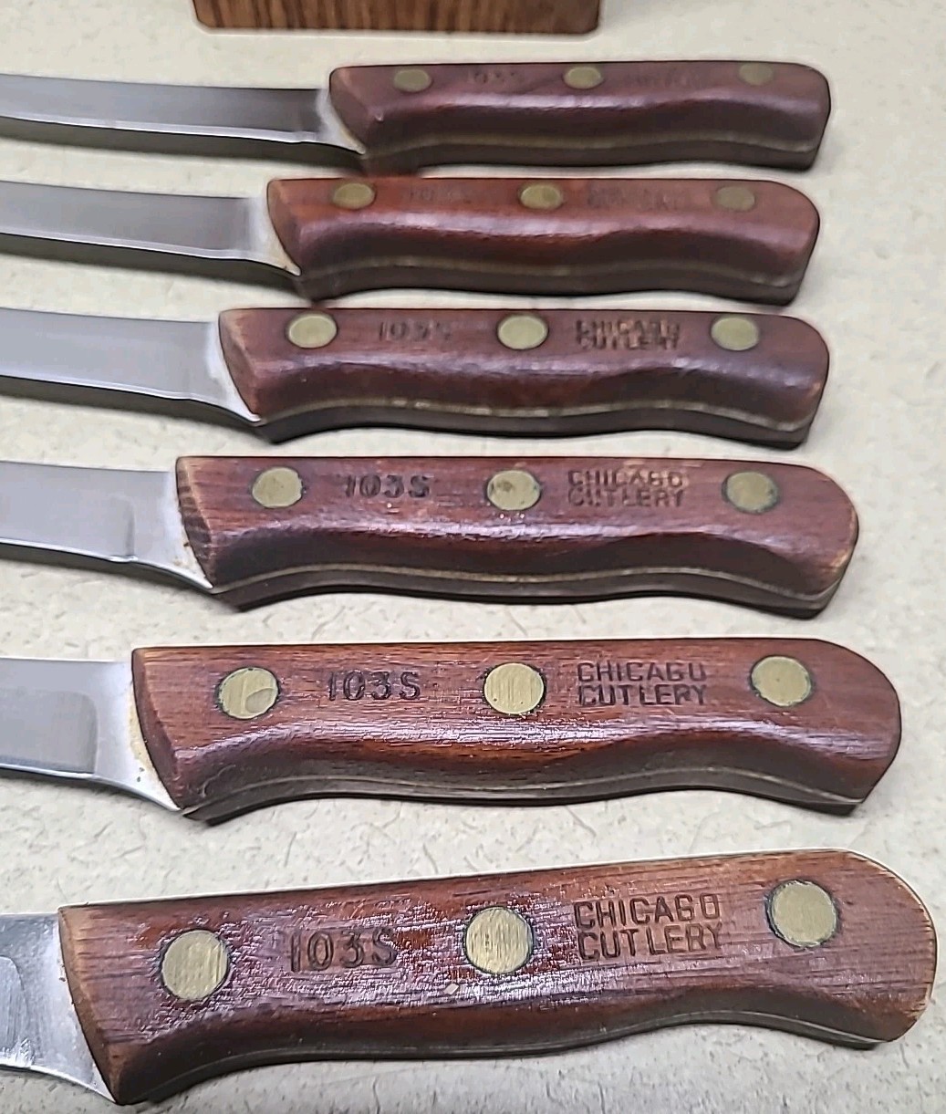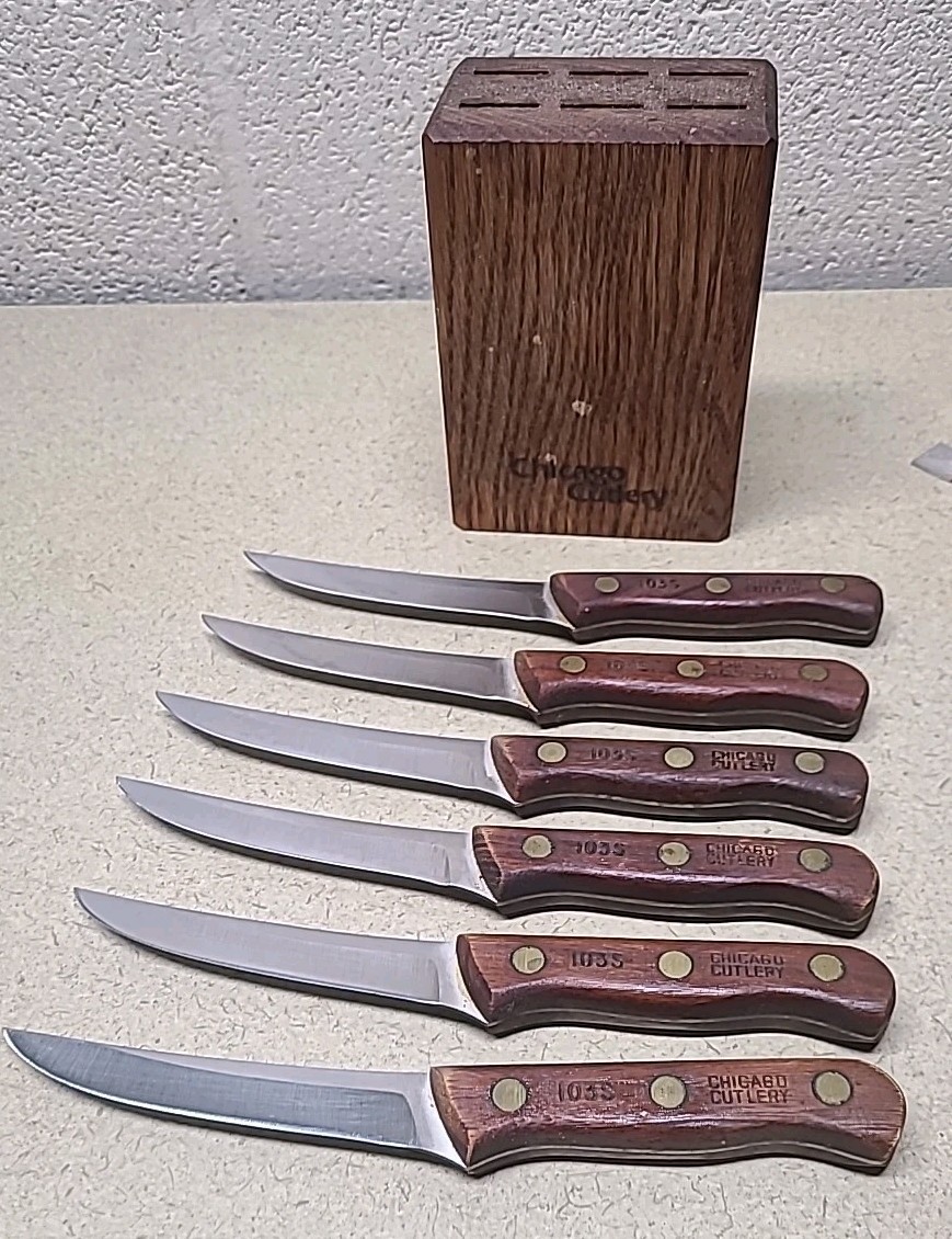 Vintage Chicago Cutlery Steak Knife Set Knives 103S Set Of 6 /with Block.