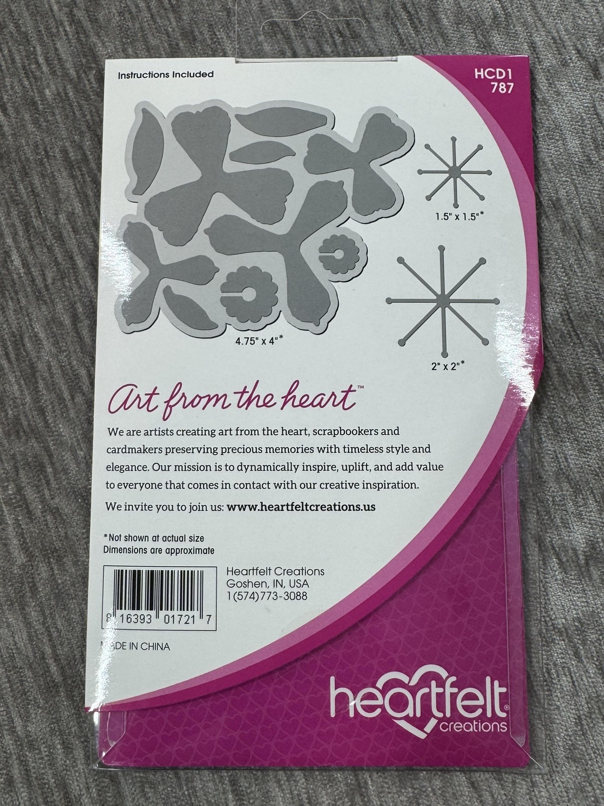 Brand markings: Heartfelt Creations logo and "Art from the heart" tagline on packaging