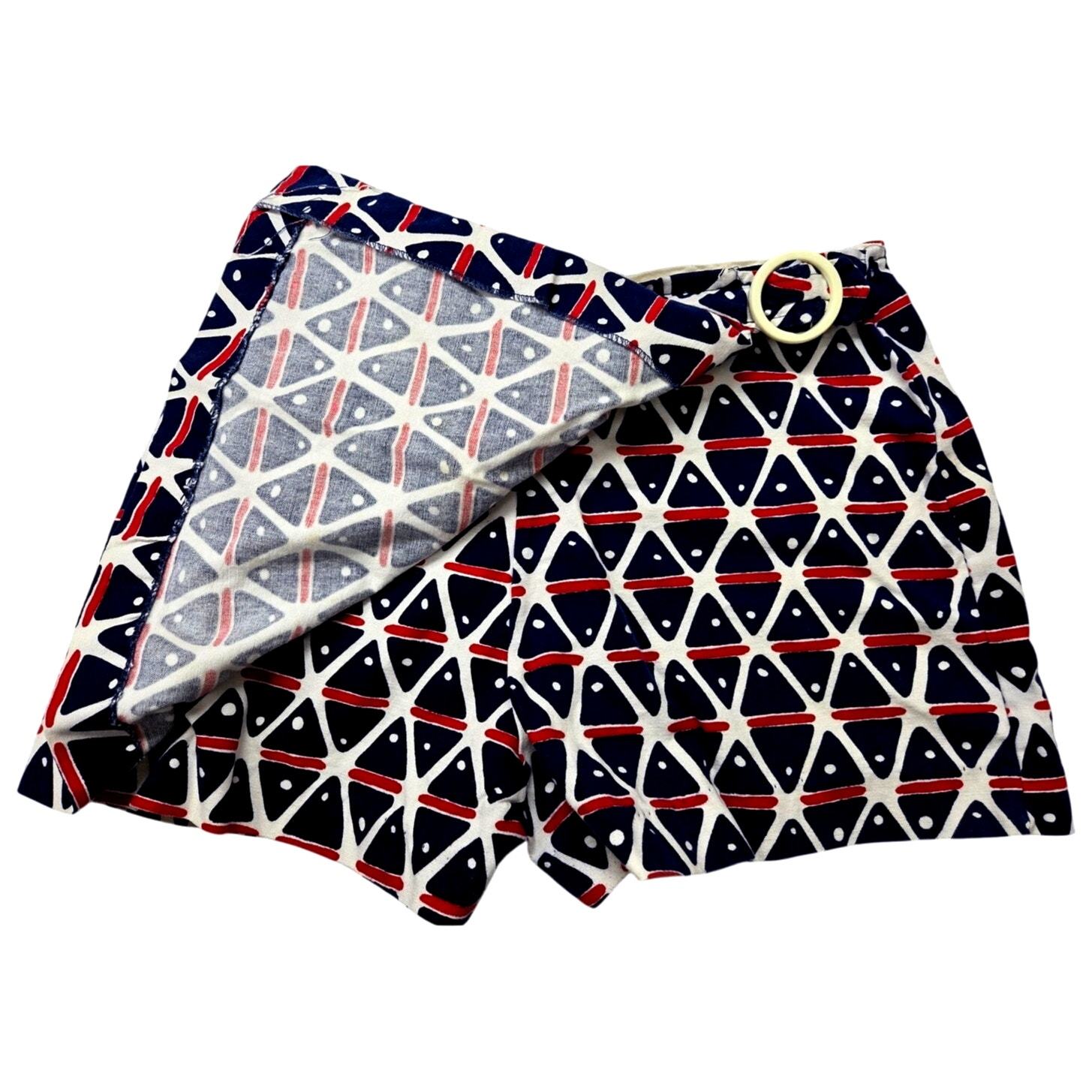 VTG 70s Red White Blue Geometric Mini Wrap Skort w/ Buckle Mod Prep XS