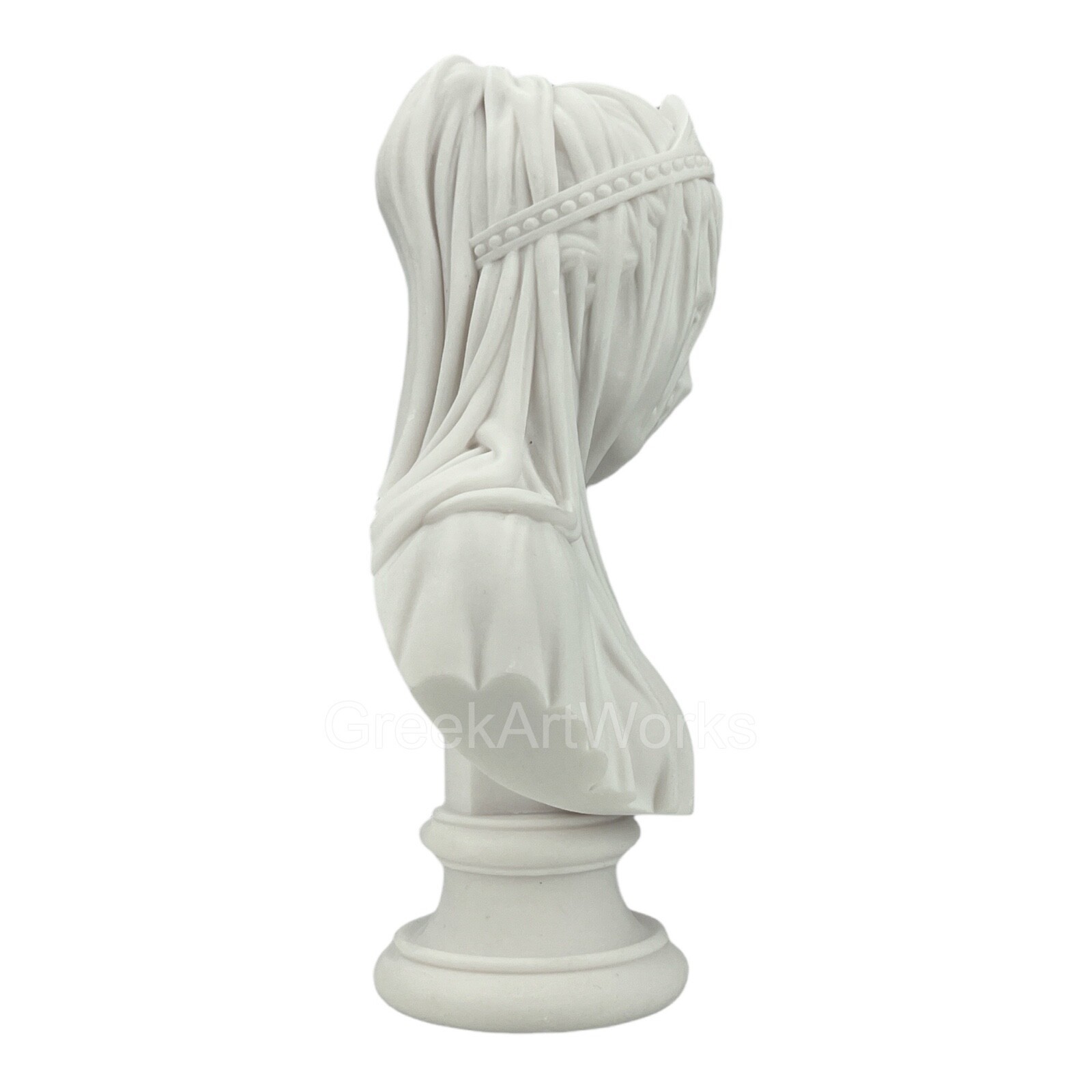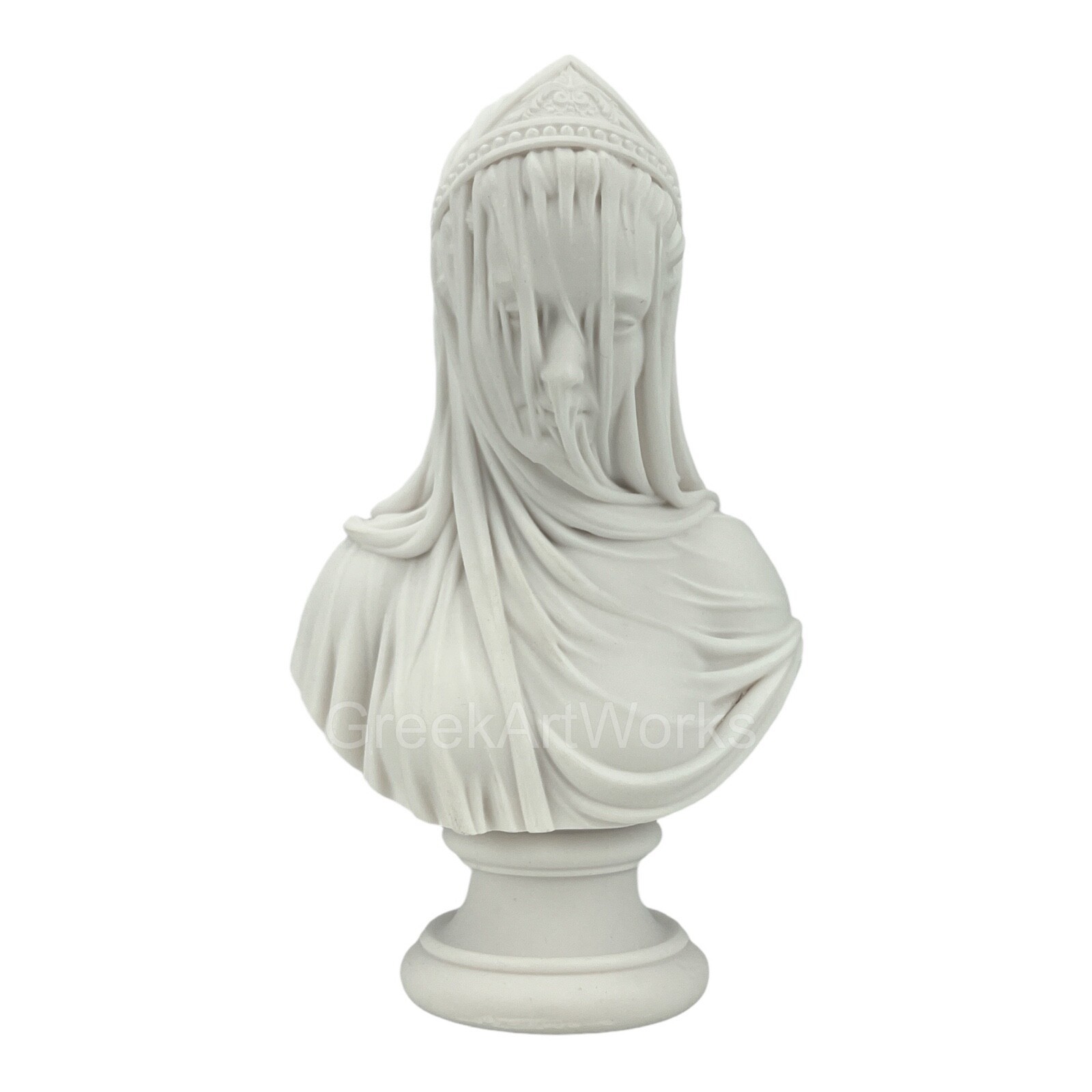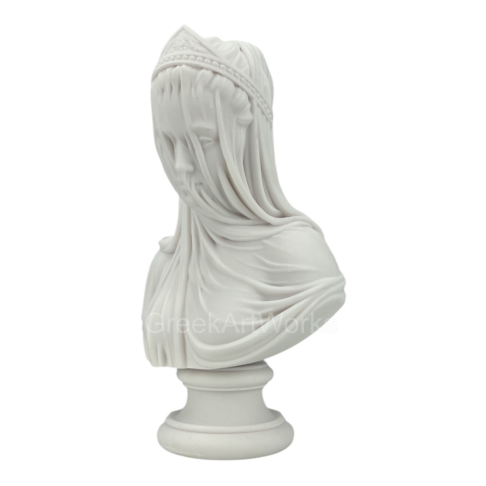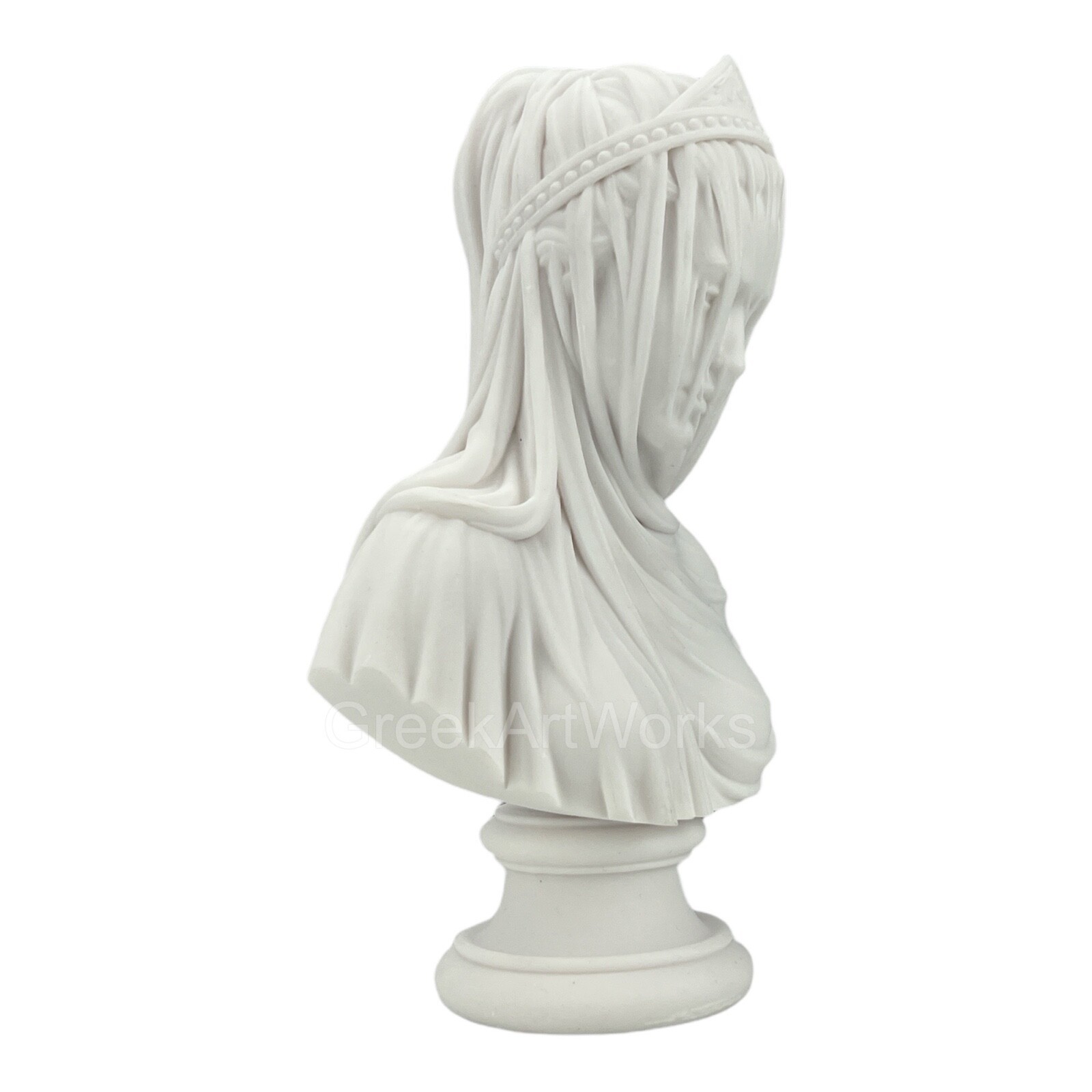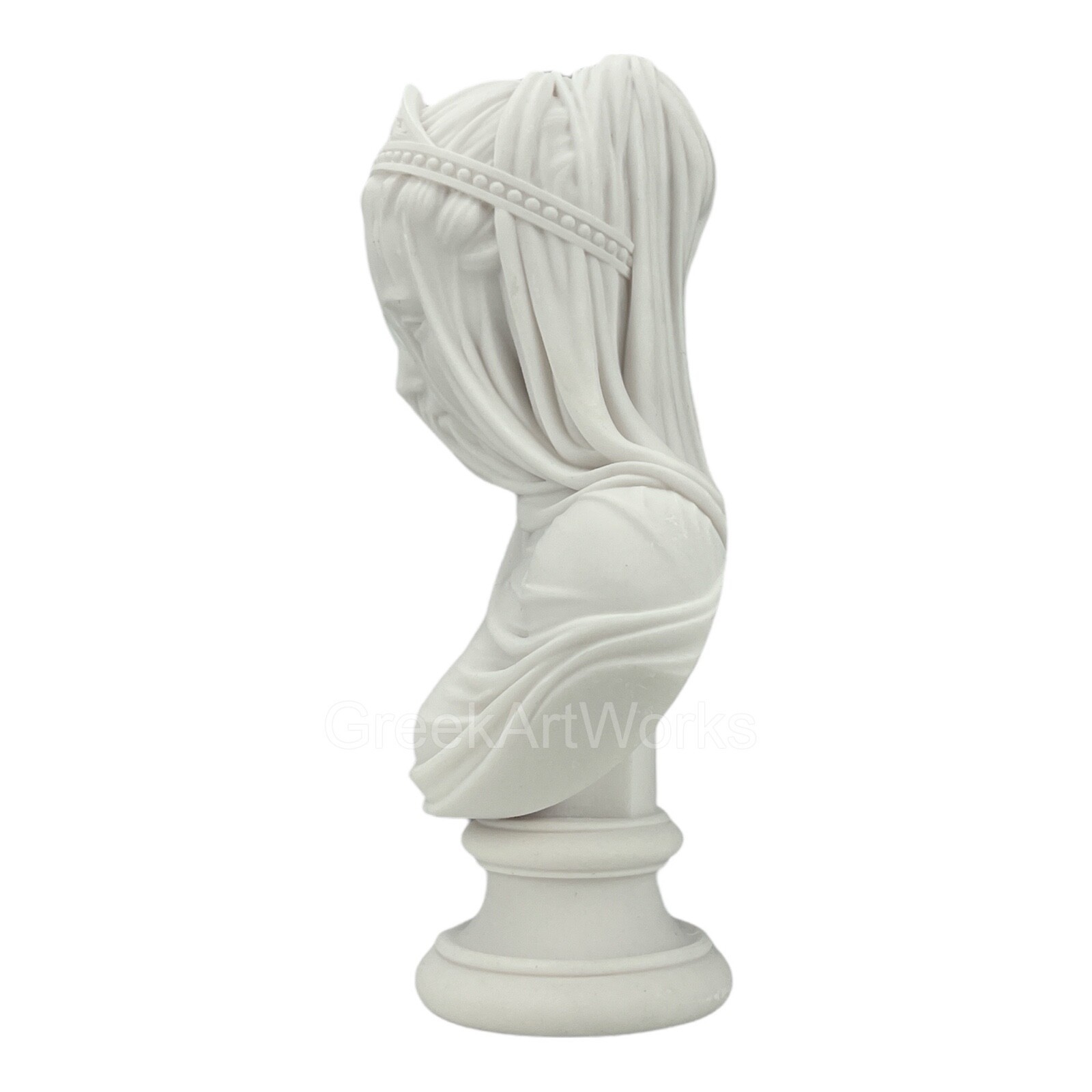 Veiled Lady Bust Sculpture Veiled Maiden Cast Marble Statue 24 cm