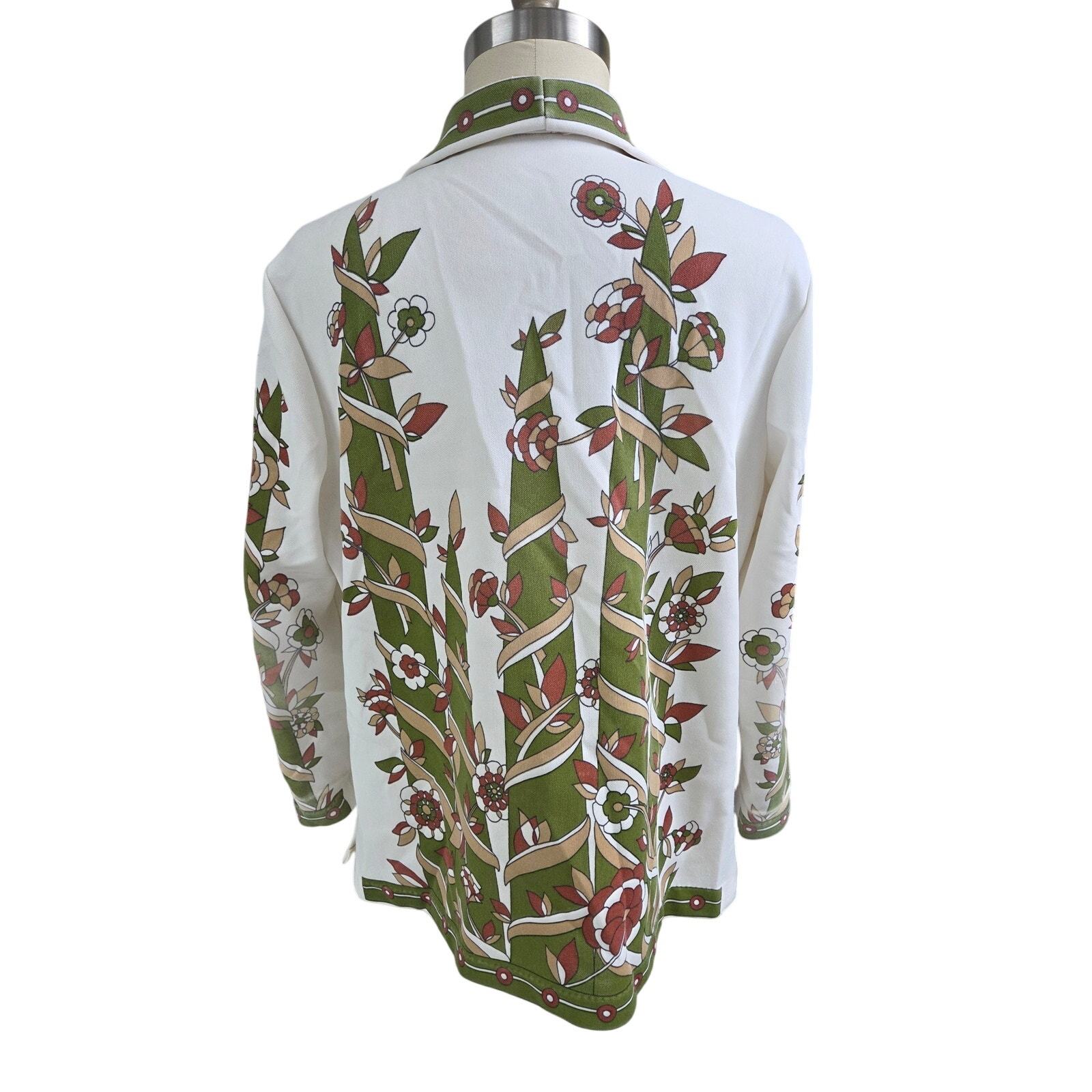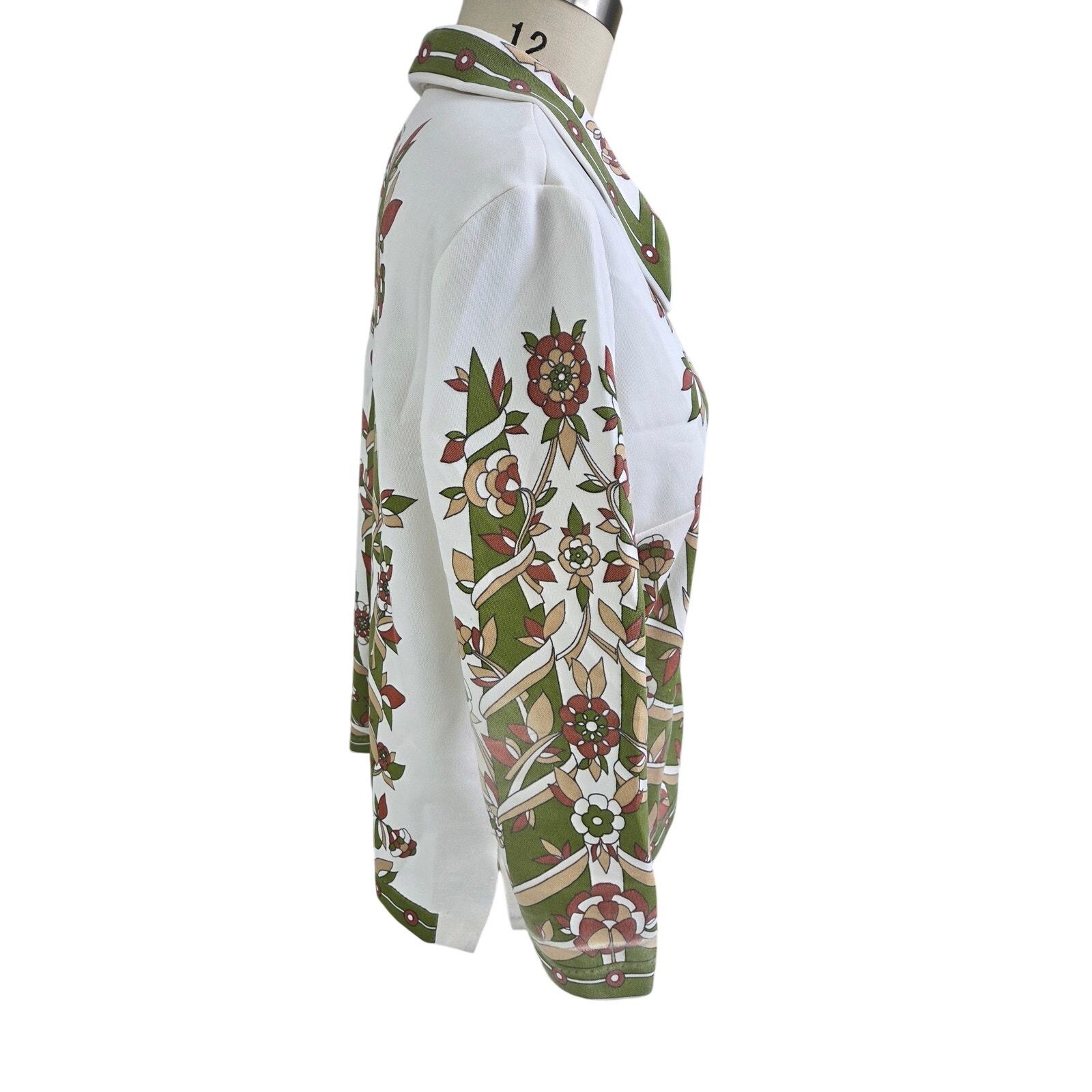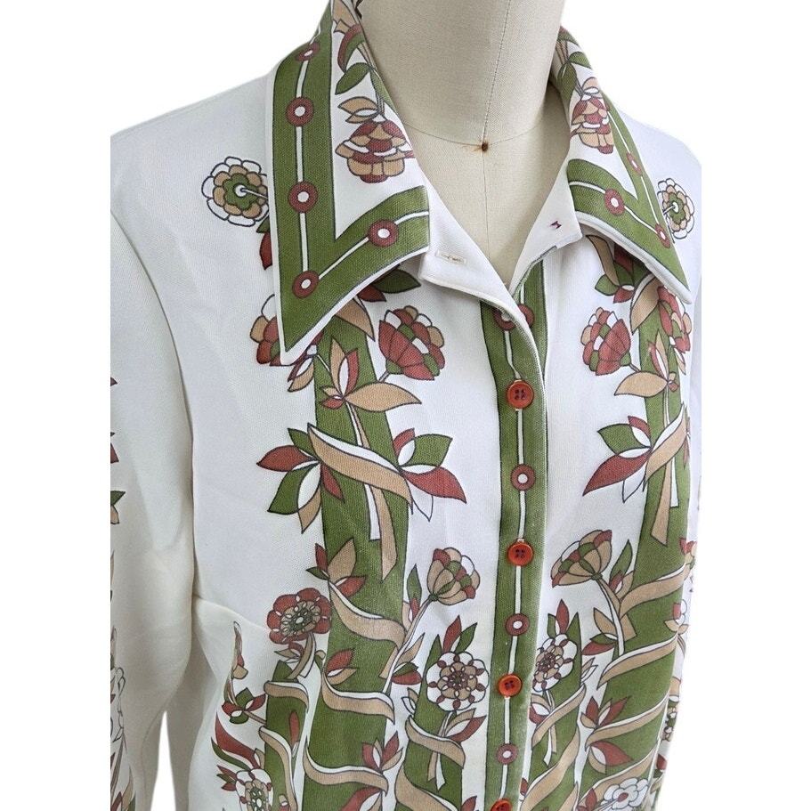 VTG 70s Green Vine Floral Border Print Blouse Costume Boho Mod L