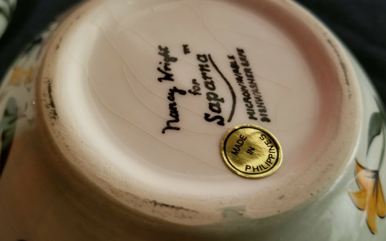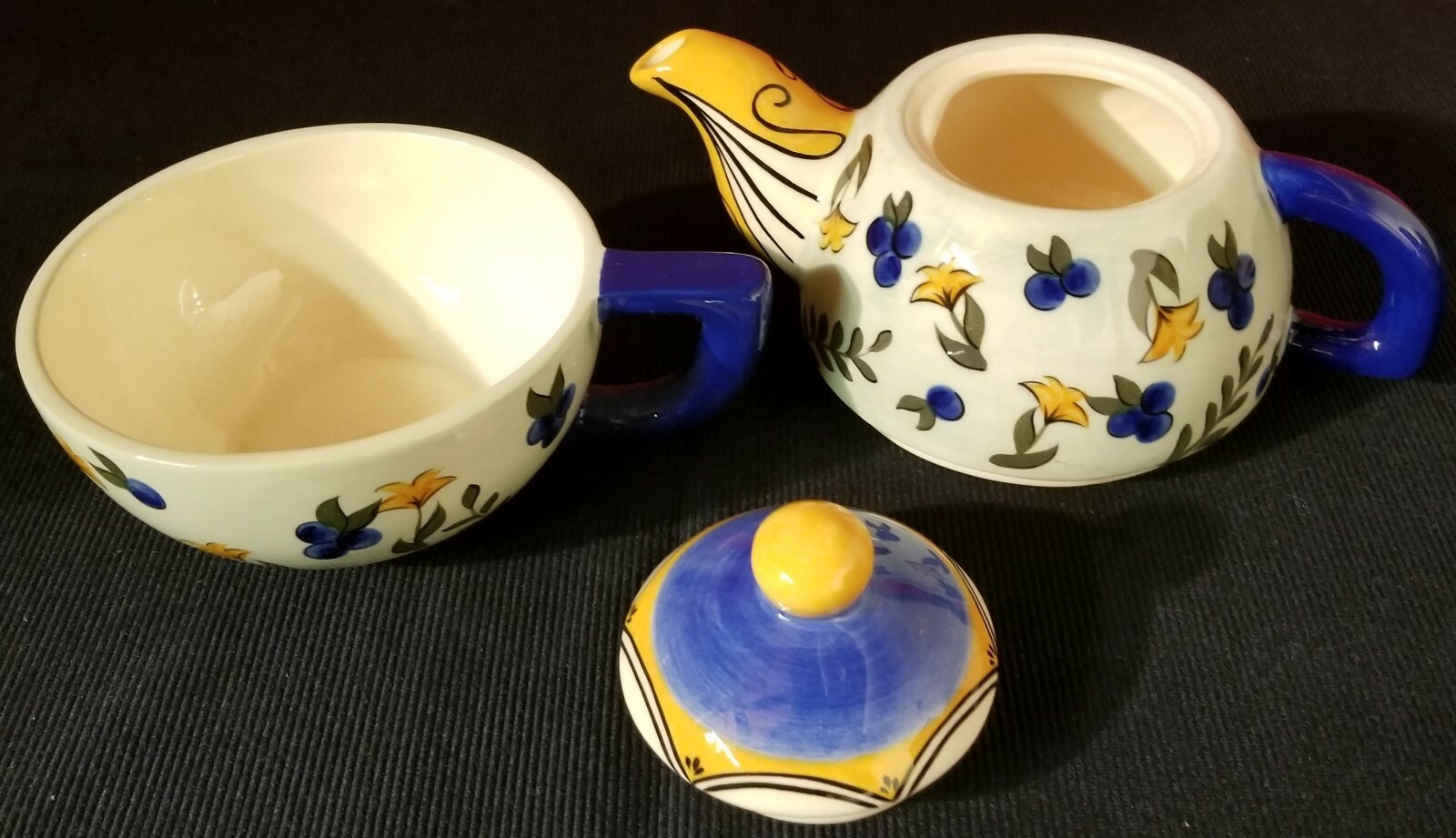 Nancy Wright for Saparna 2 Piece Ceramic Floral Fruit Tea Pot