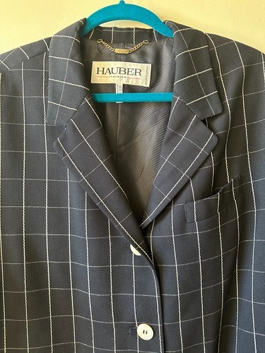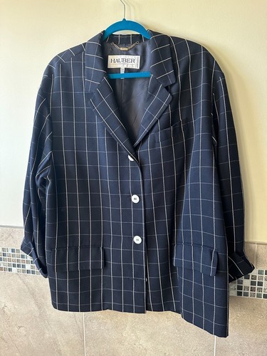 Hauber Navy Check Blazer Wool Blend Blazer US 14 Germany