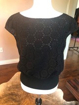 NWOT GIAMBATTISTA VALLI Black Sleeveless Boatneck Lace Crocheted Short Top SZ 12