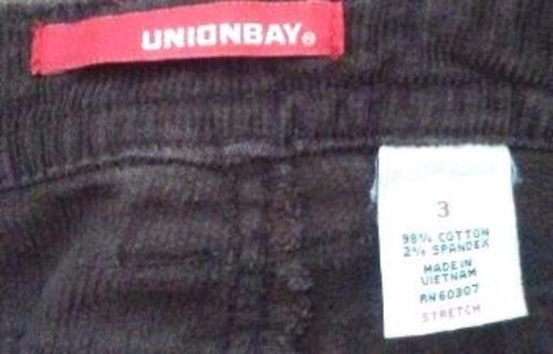 This pre owned UNIONBAY Women's Brown Stretch Jeans is in excellent pre-owned condition with no signs of damage of any kind. Made in Hong Kong. Size 3. It is 98% Cotton and 2% Spandex.