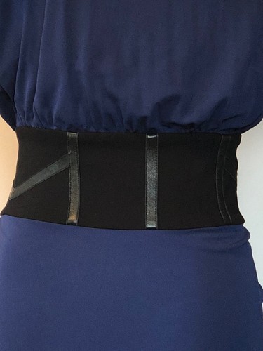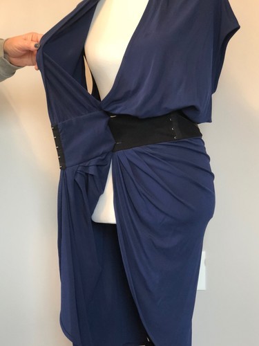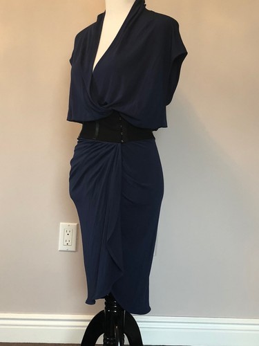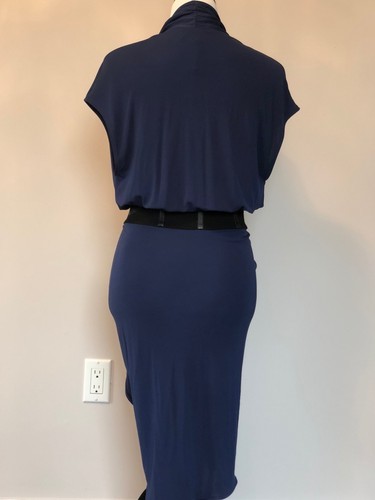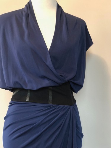 NWT HAUTE HIPPIE Lapis Blue Jersey Dress Black Belt SZ S Retail $496