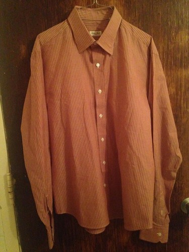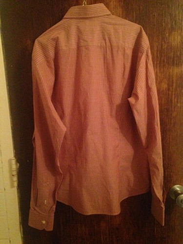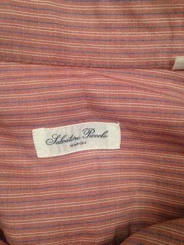 Men's Salvatore Piccolo Salmon Pink Shirt with Blue White Stripe Button Down Shirt SZ XL
