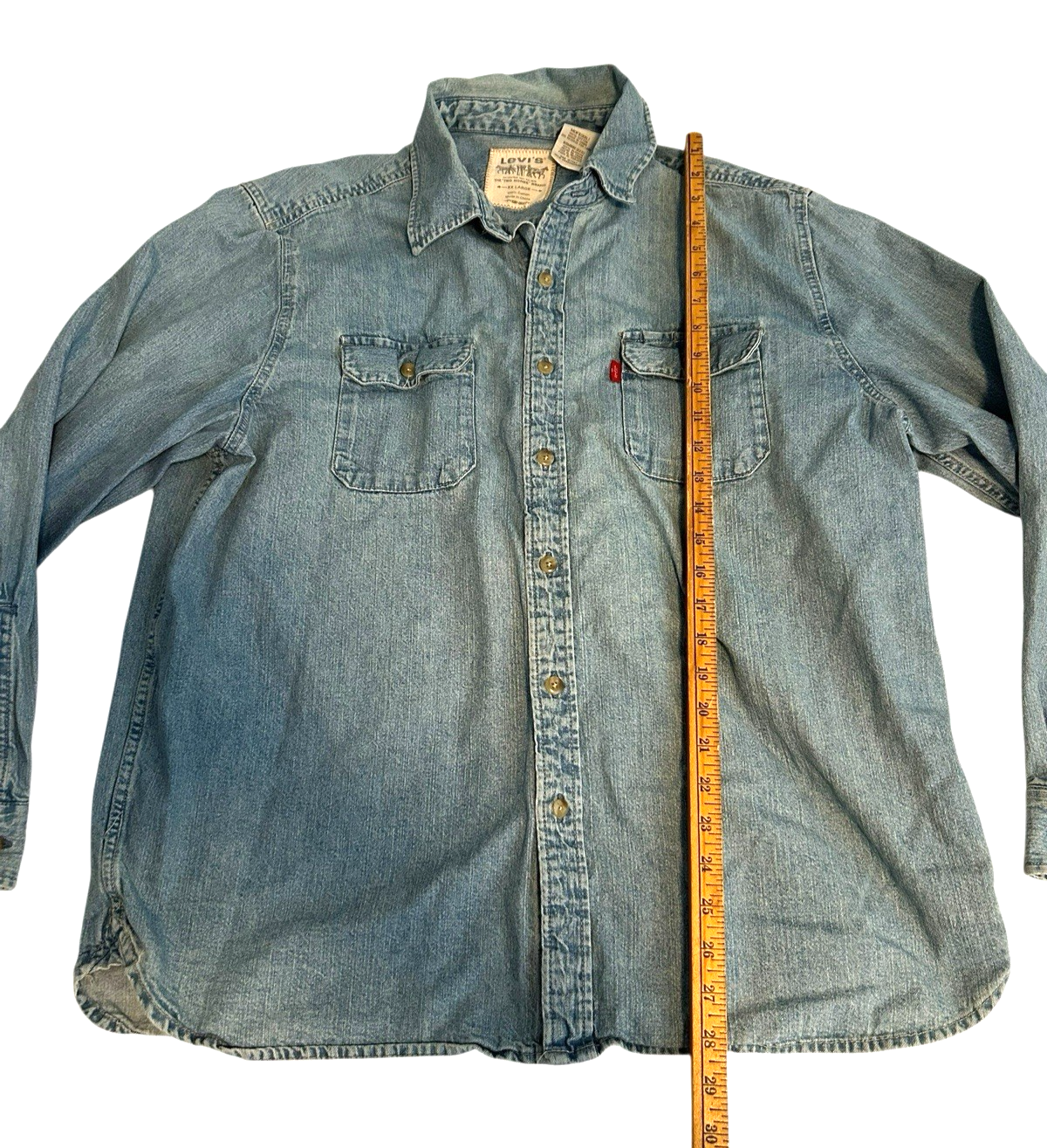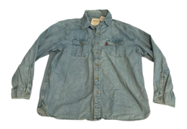 VINTAGE LEVIS MENS RED TAB TAG JEAN SHIRT METAL LIGHT DENIM LONG SLEEVE XXL