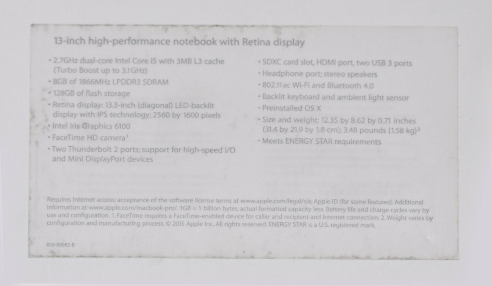 2015 Apple Mac Book Pro 13.3" A1502 | For and similar items
