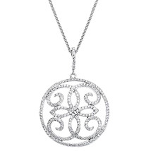 0.95 Carat Défiler Motif Diamant Rond Chaîne 16'' Pendentif 14k or Blanc
