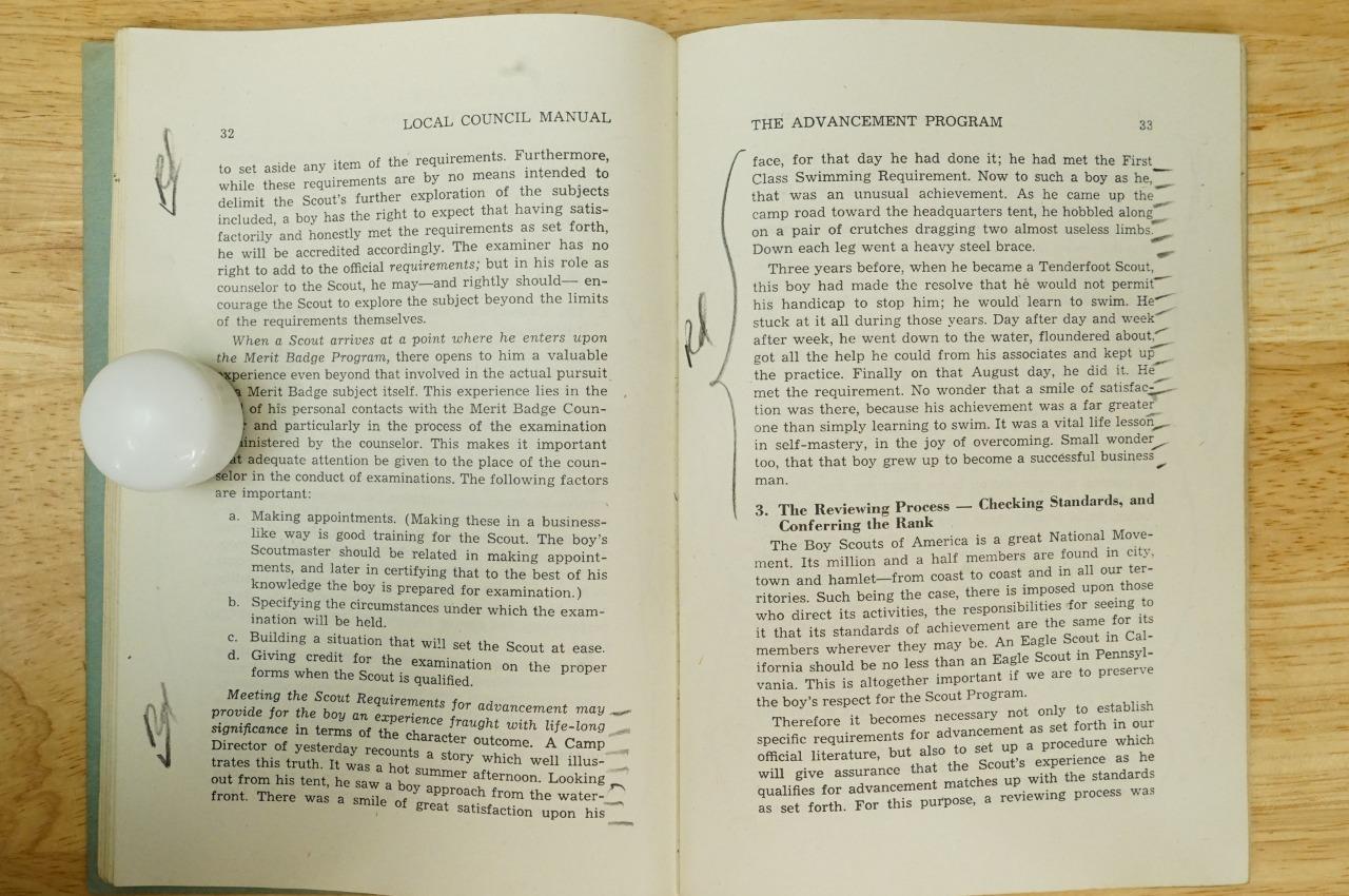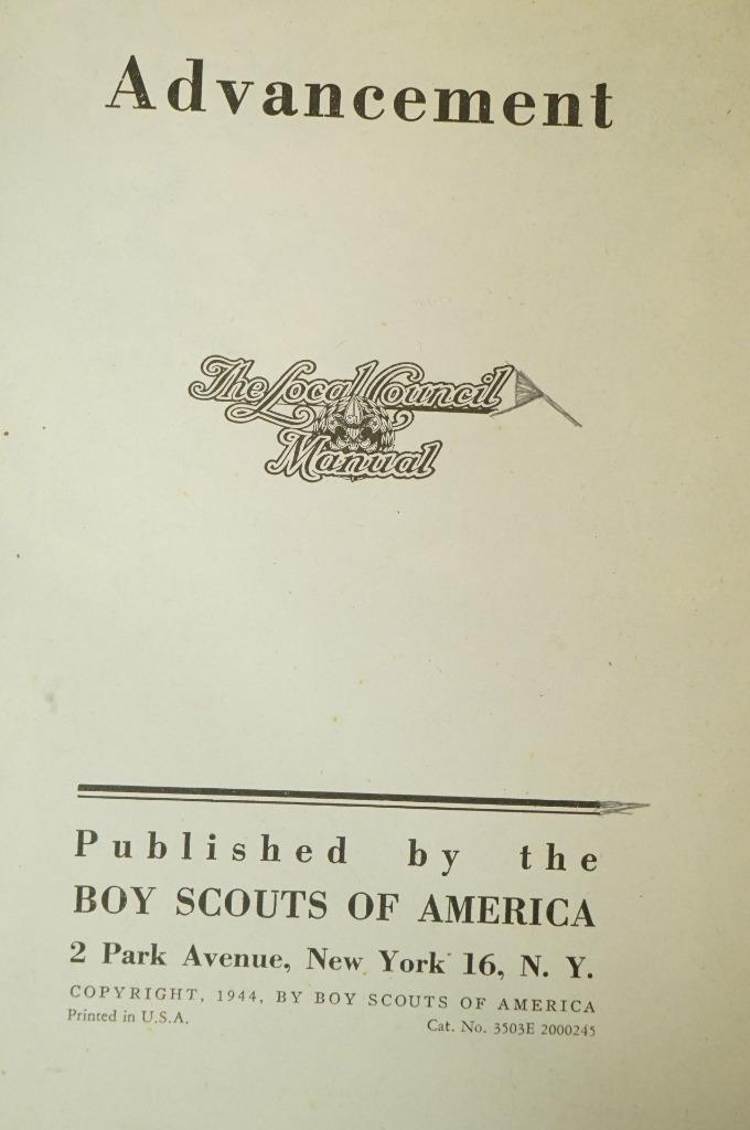Vintage 1944 BSA Boy Scouts Advancement The Local Council Manual Book WW2 Era. You get the exact piece you see in the photo. Please refer to photos in the listing for further information on condtion.