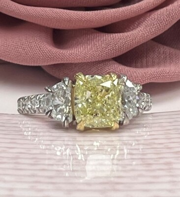 3 Stone GIA 2.48CT Cushion Cut Natural Fancy and 43 similar items