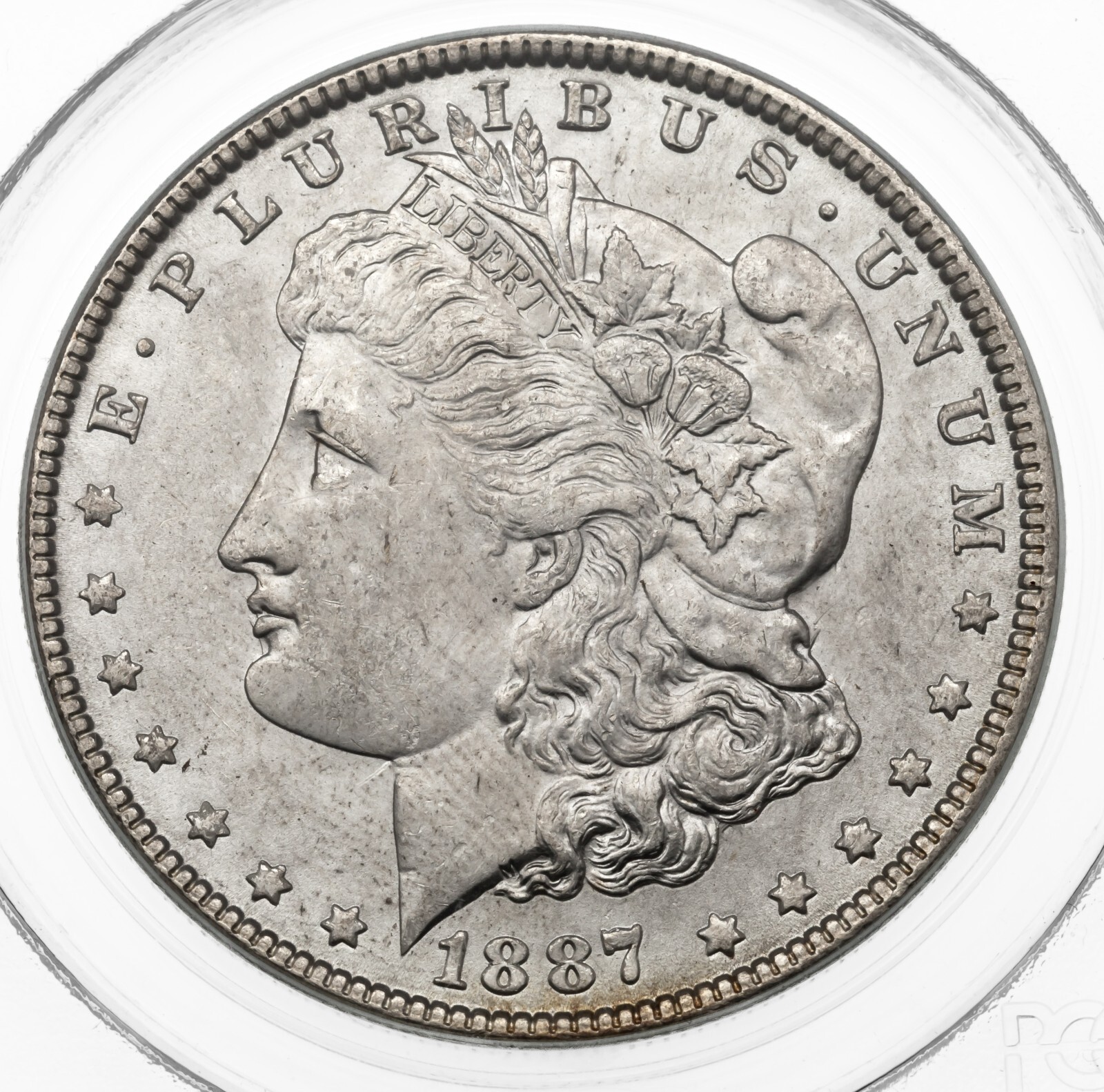 1887 Silver Morgan Dollar Graded by PCGS as MS-63