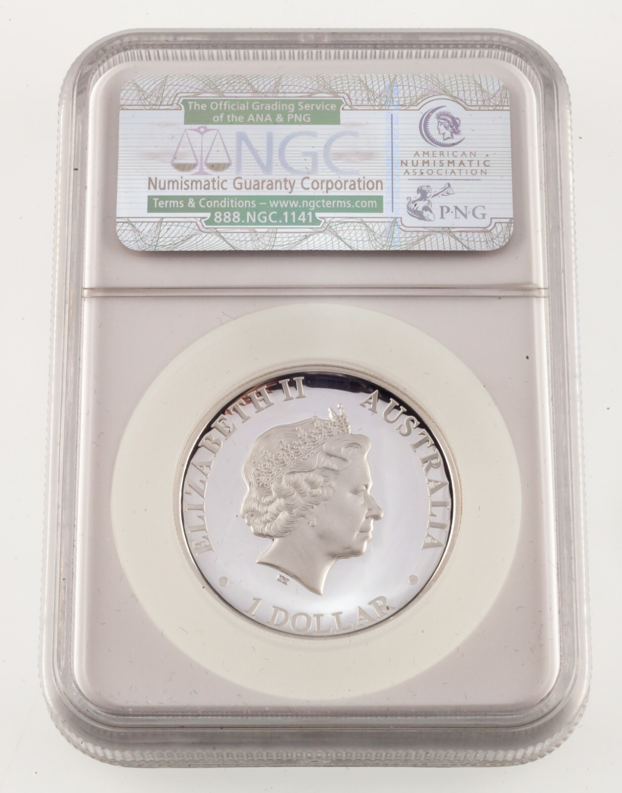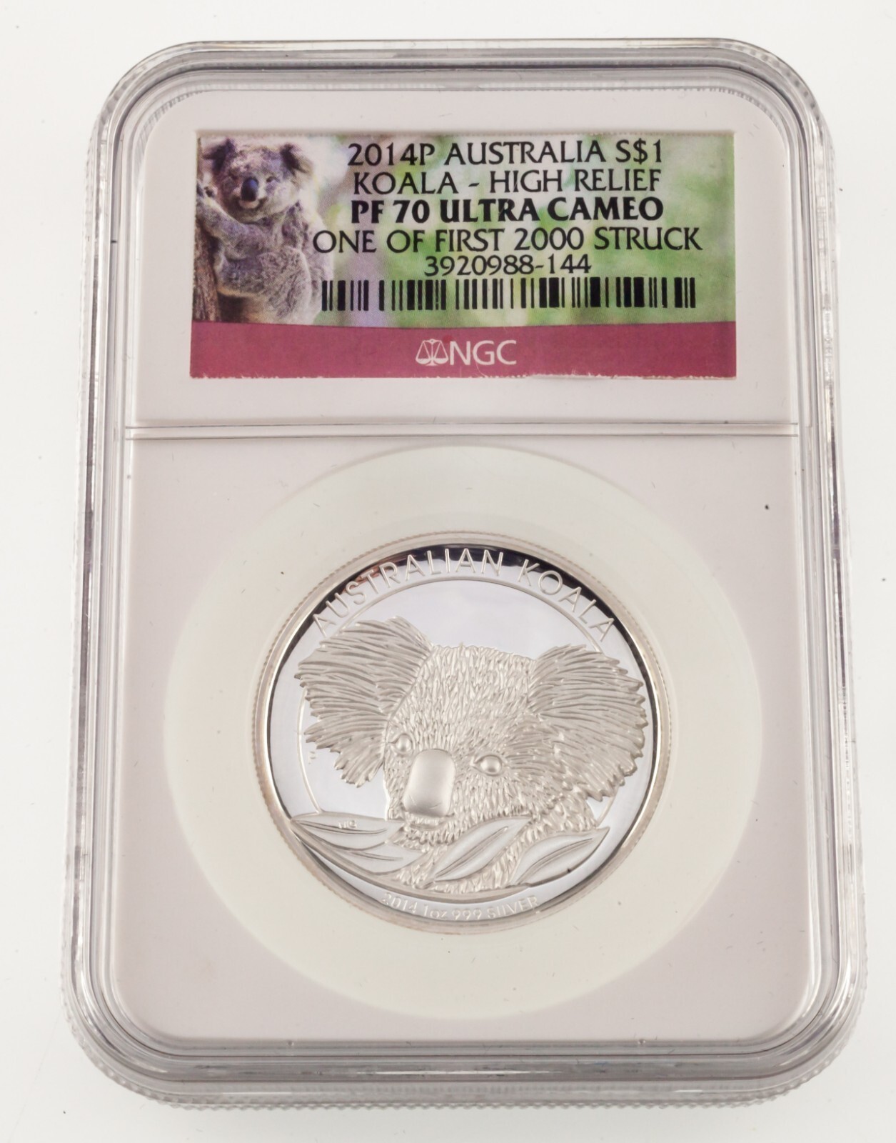 2014-P Australien S$1 High Relief Koala NGC PF70 Ultra Cameo mit Box und Echtheitszertifikat 2000