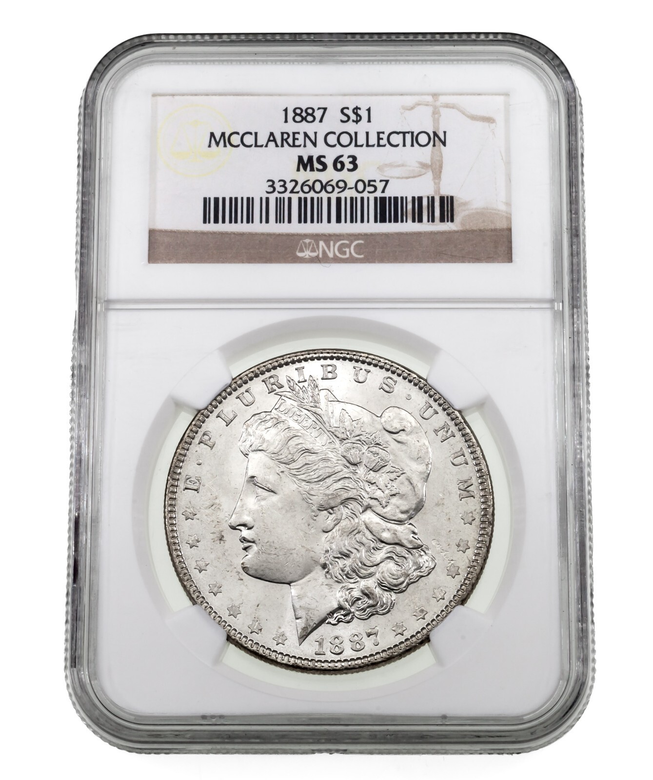 1887 Silber Morgan Dollar Ausgewahlten Von NGC As MS-63 Mcclaren Collection