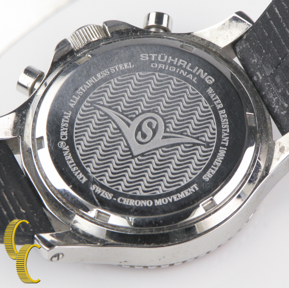 Sturhling Stainless Steel Chronograph Quartz Watch w/ Black Silicone Band