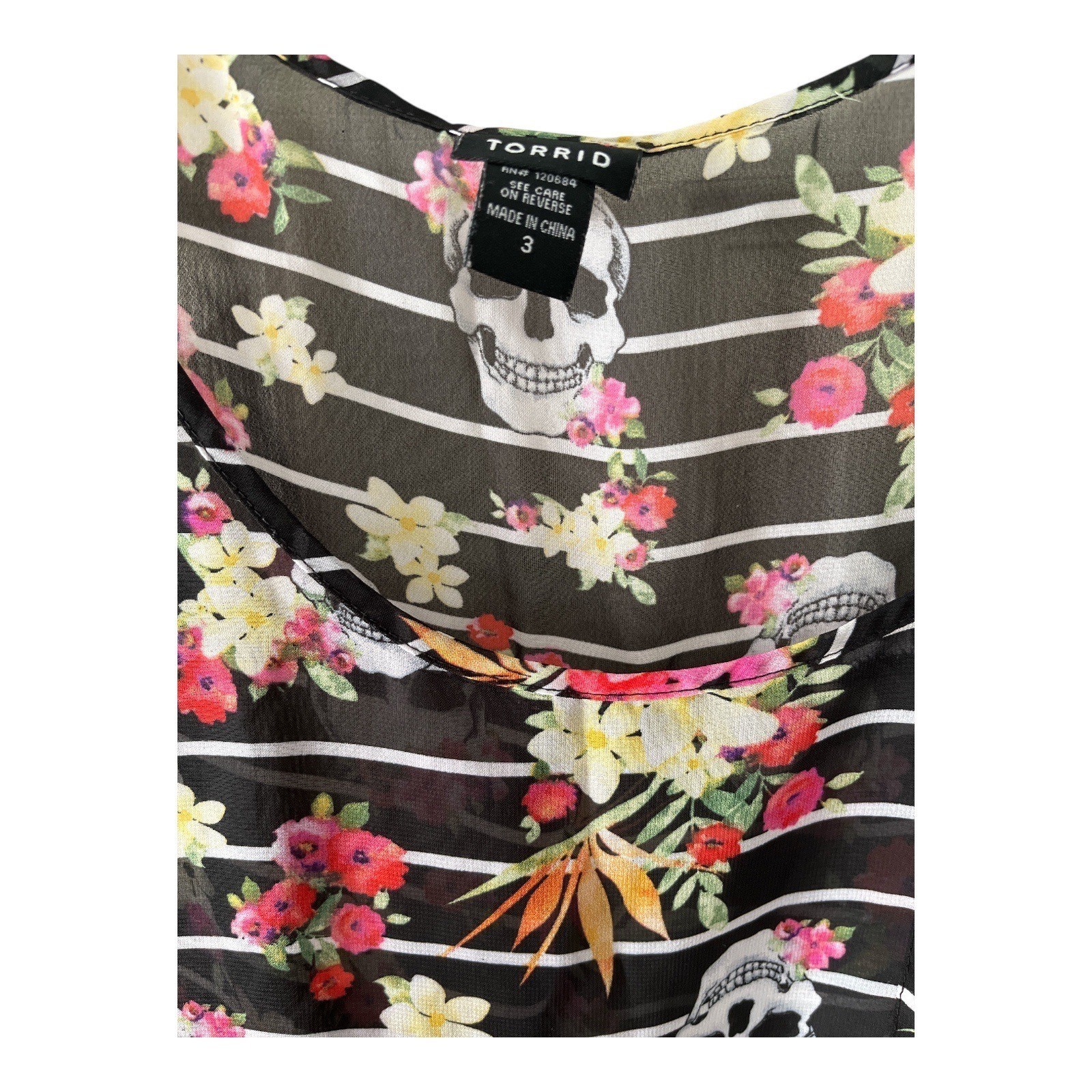 Torrid Women’s Size 3 Floral Skull Striped Sheer Tank Top