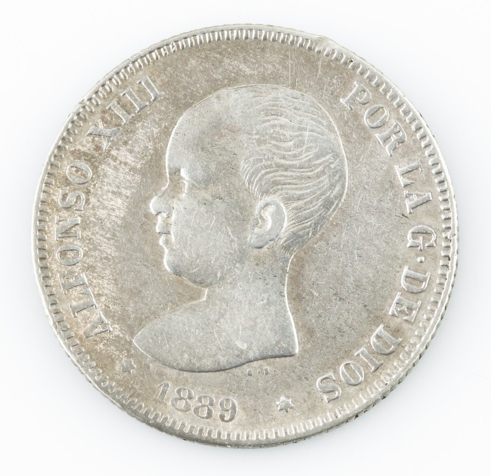 1889 España 2 Pesetas Detalles muy finos Alfonso XIII