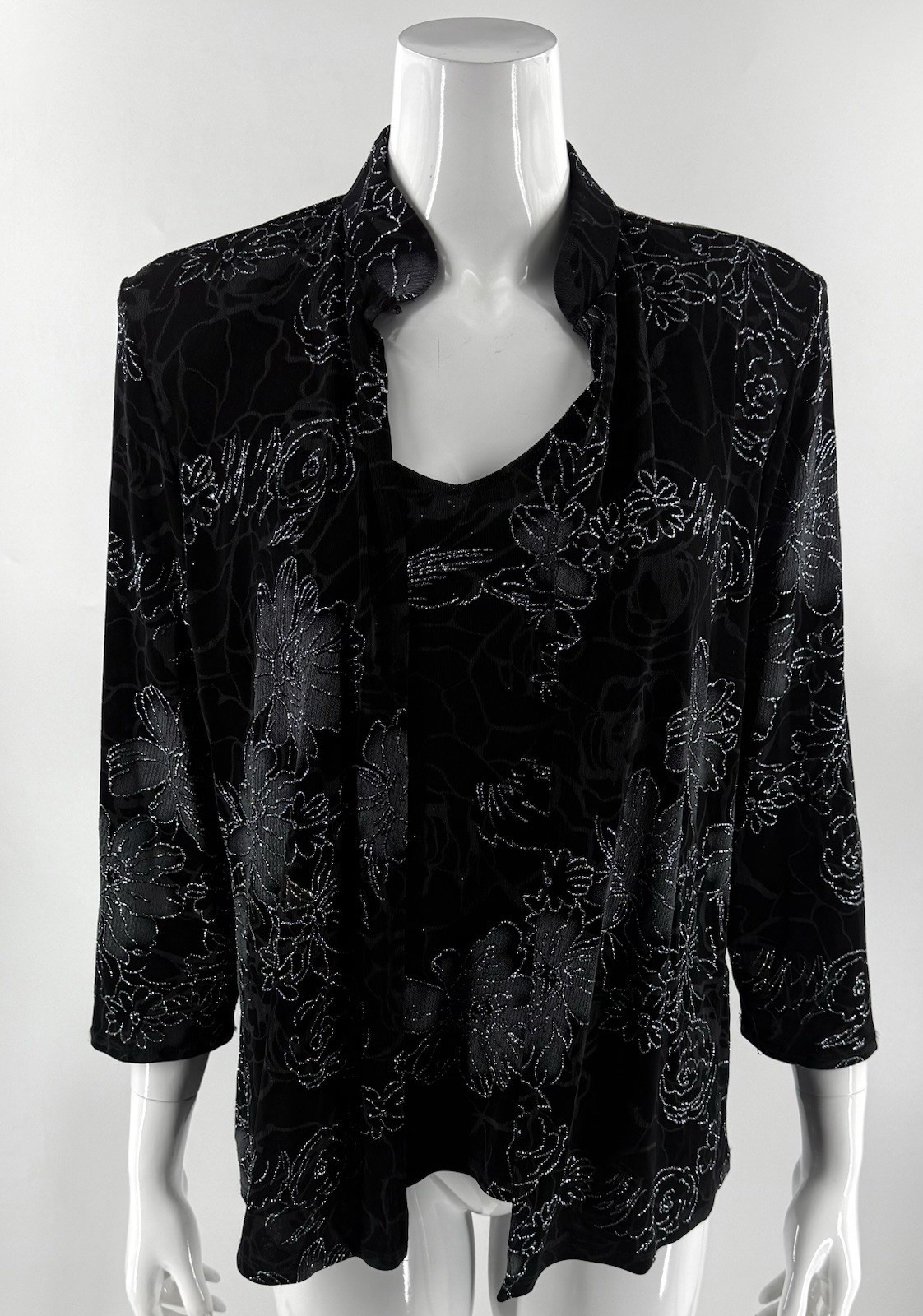 Onyx Nite Womens Jacket & Top Set Size Large Black Silver Slinky Knit Evening