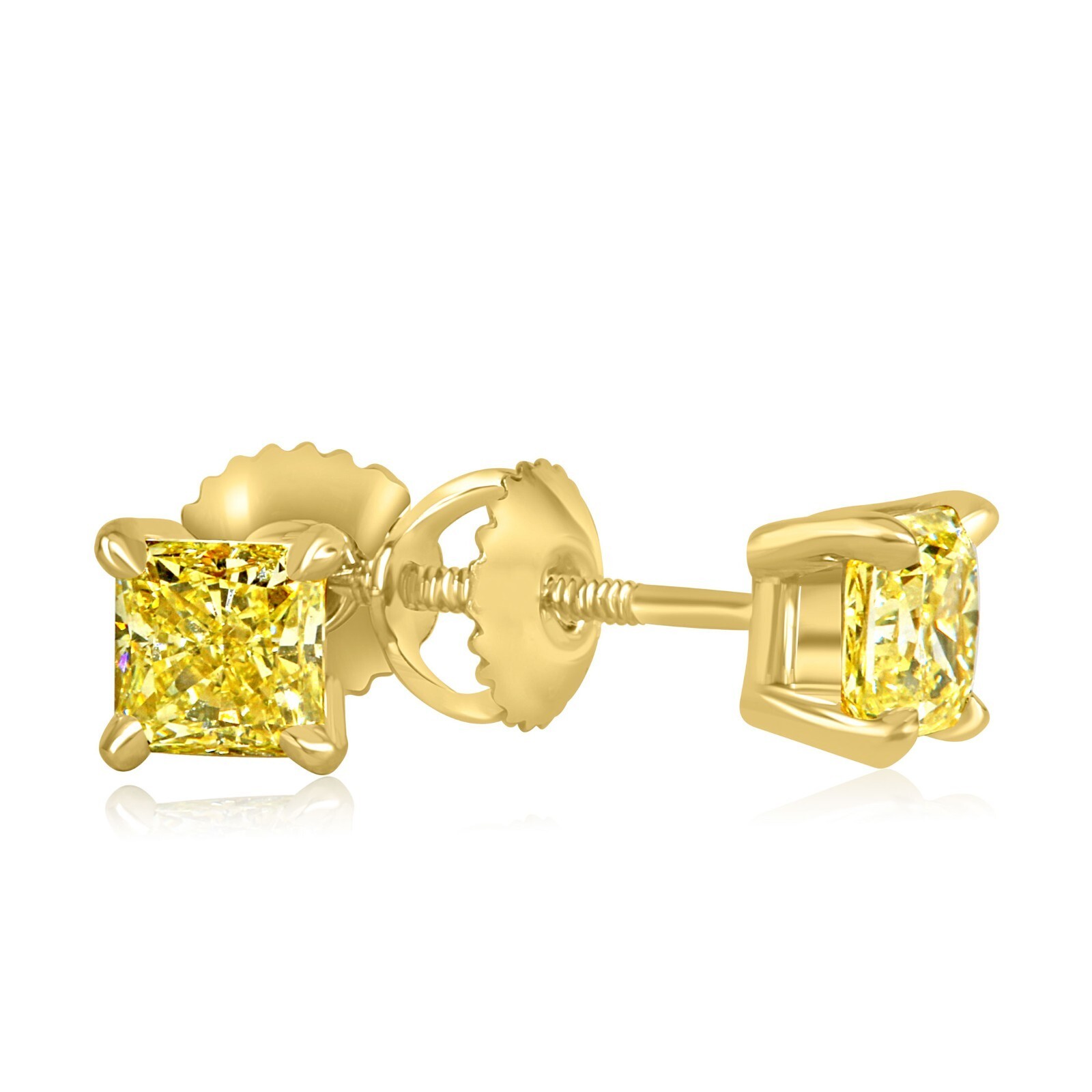GIA 1.42 TCW Radiant Natural Fancy Light Yellow Diamond Stud Earrings 18k Gold
