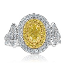 GIA Certified 1.58 CT Natural Fancy Yellow Oval Diamond Ring 18k White Gold