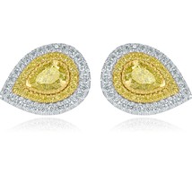 GIA Certified 1.62 CT Pear Natural Fancy Yellow Diamond Stud Earrings 18k Gold