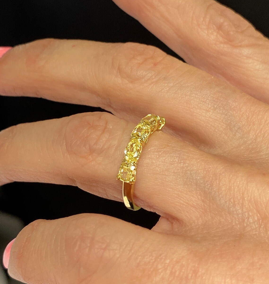 Spettacolare 5 Pietra 2.41CT Ovale Decorato Diamante Giallo Fede Nuziale 14k