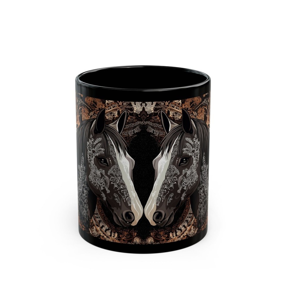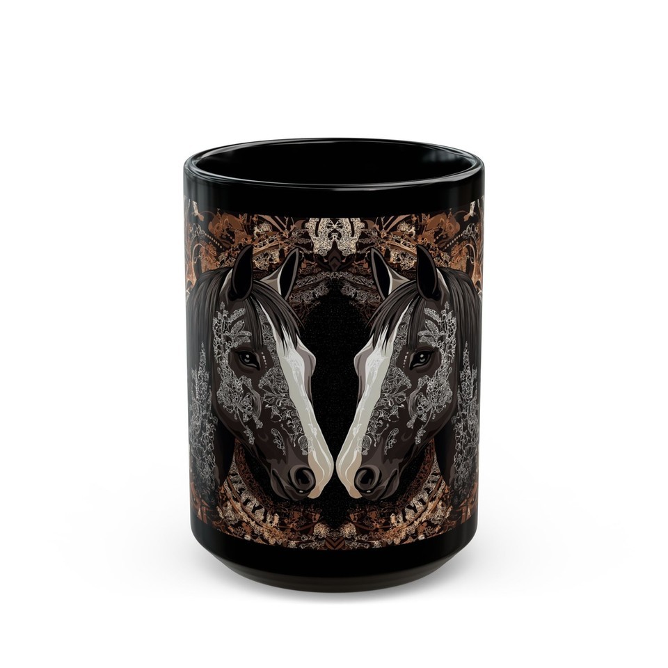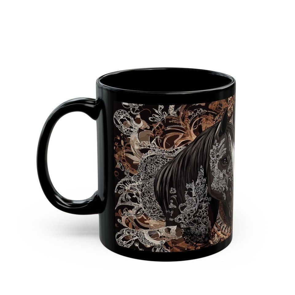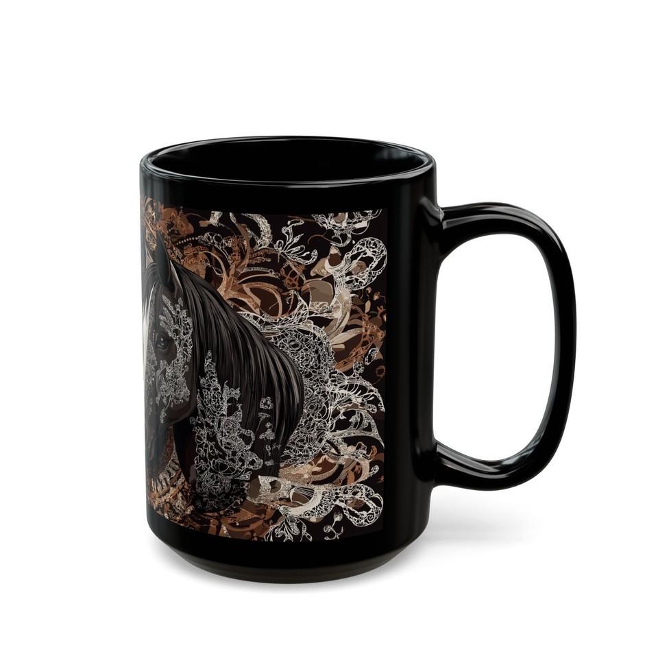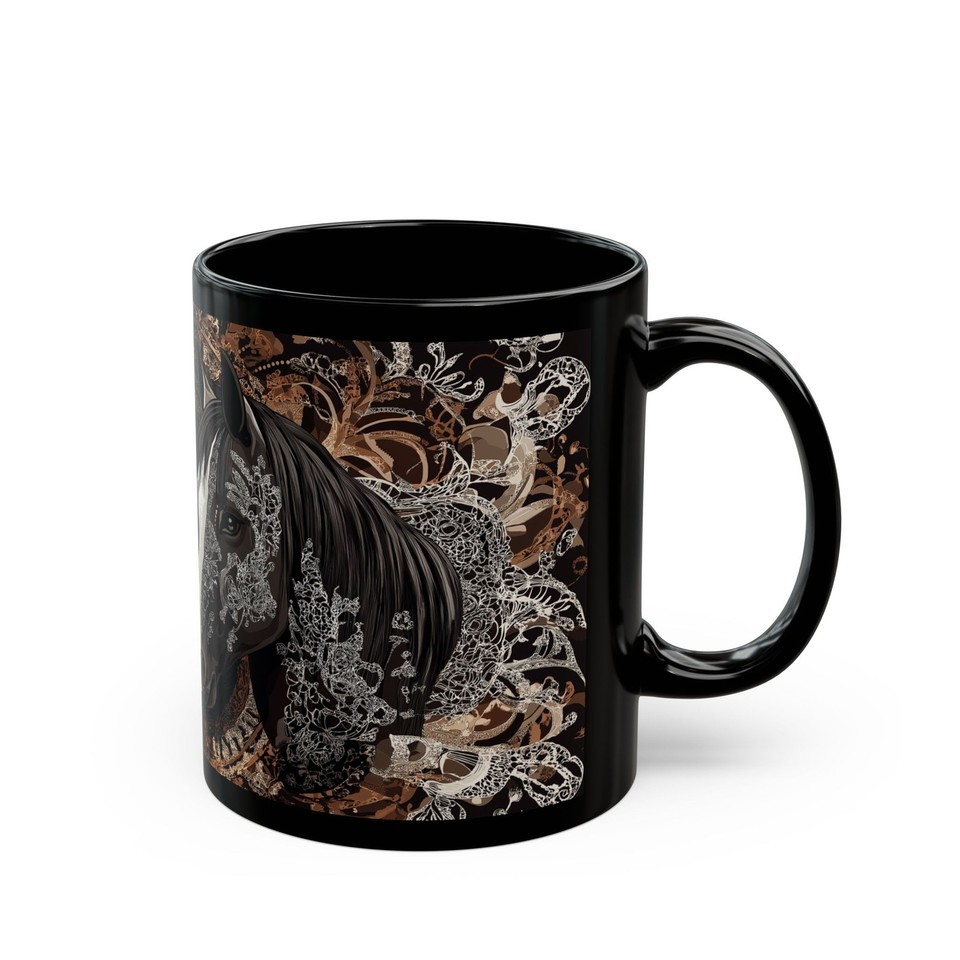Introducing the perfect addition to your morning routine: our beautifully designed black mug. This stunning ceramic mug features a glossy finish that brings vibrant colors to life, making it an eye-catching piece for your kitchen or office. Whether sipping coffee, tea, or your favorite hot beverage, this mug adds a touch of elegance and personality to your day. Ideal for horse lovers, art enthusiasts, or anyone who appreciates unique designs, it?s a thoughtful gift option for holidays like Christmas, birthdays, or special occasions. Its microwave and dishwasher-safe features make it not only stylish but also practical for everyday use. Enjoy a moment of warmth and inspiration with every sip!